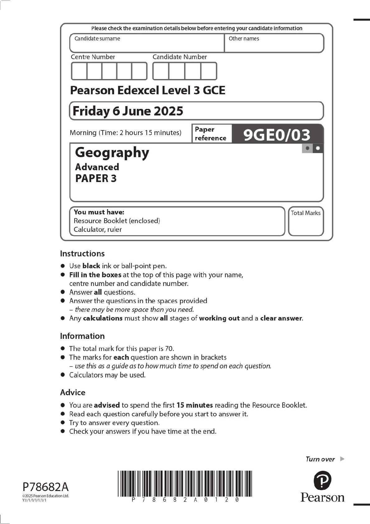 Geography > Edexcel > 2025 Pearson Edexcel Level 3 GCE 9GE0/03 Geography Advanced PAPER 3 Question Paper + Mark Scheme (All)