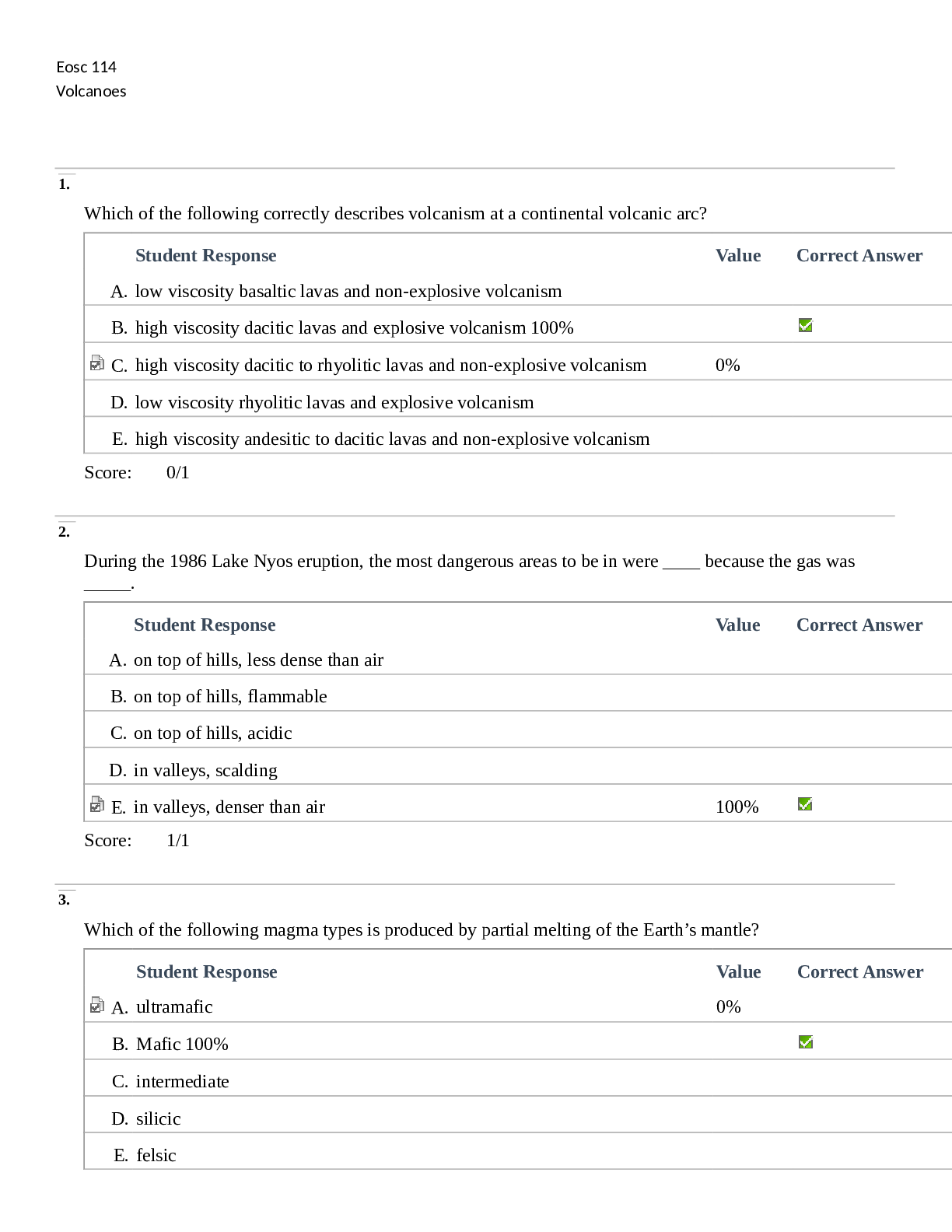 Geography > QUESTIONS & ANSWERS > University of British Columbia - EOSC 114Volcano HW Answers (All)