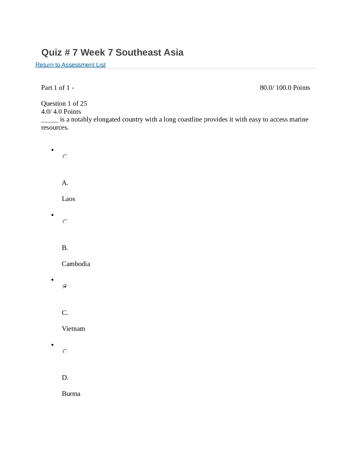 Geography > QUESTIONS & ANSWERS > American Public University - GEOG 101 / GEOG101 Quiz 7 (2020/2021) (All)