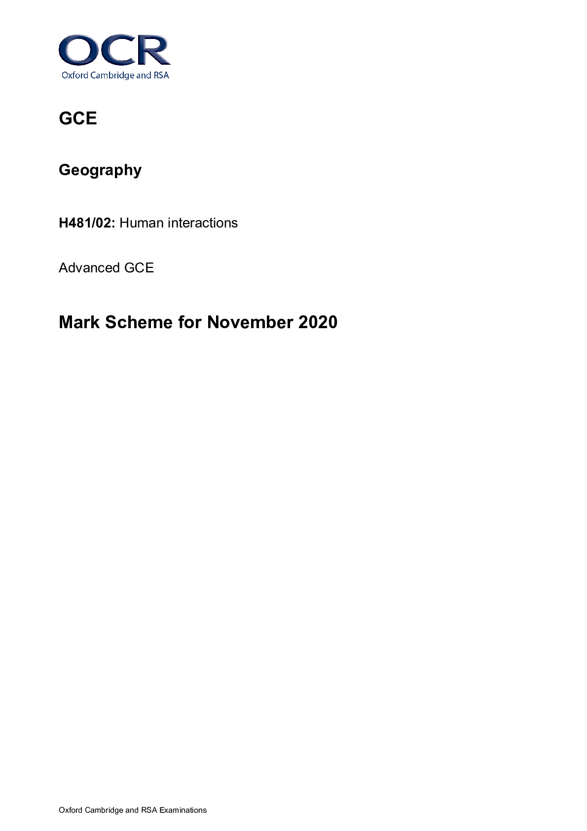 Geography > A/As Level Mark Scheme > A Level Geography_H481/02 Mark Scheme Nov 2020 | Human interactions (All)