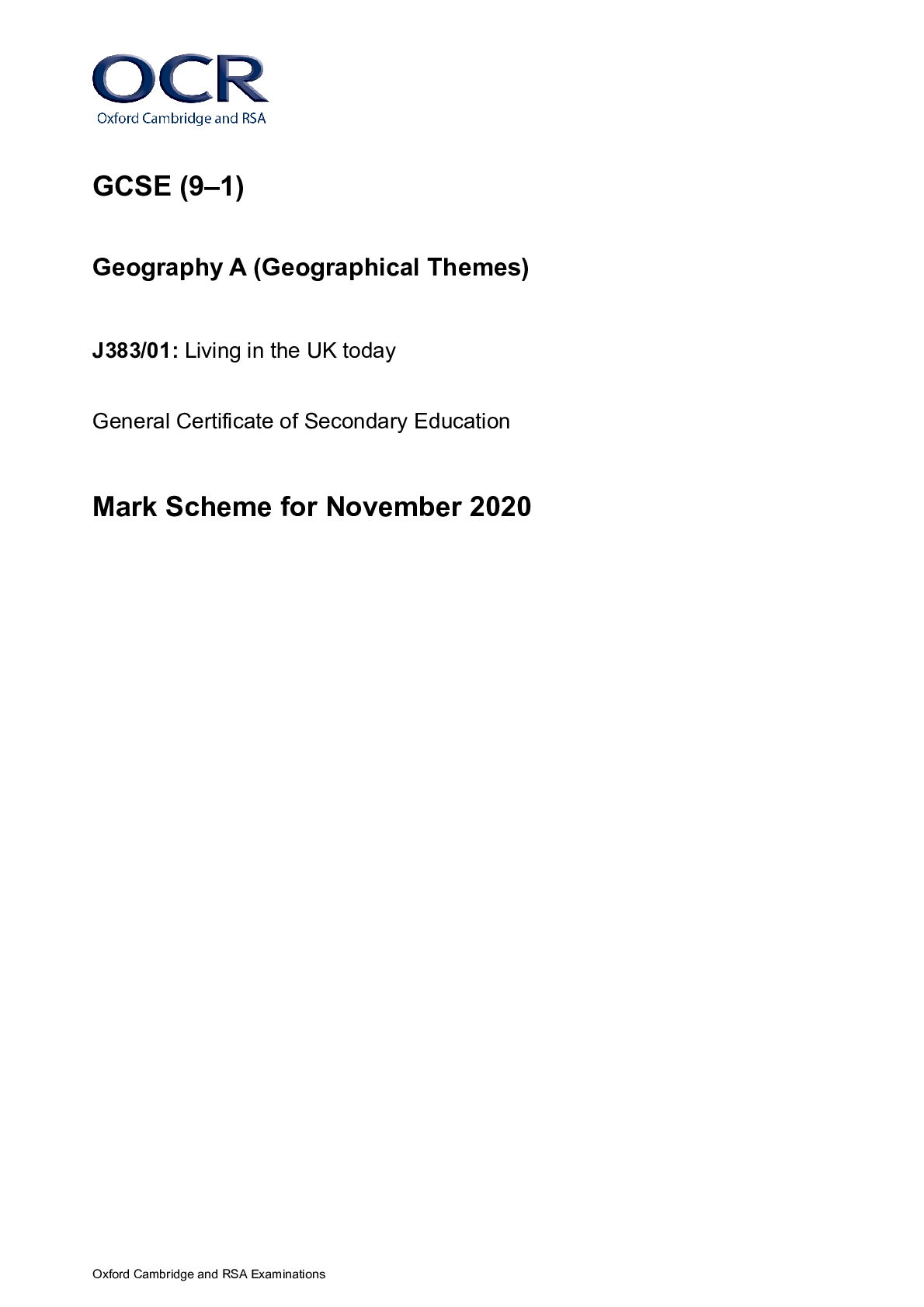 Geography > Higher Education > GCSE (9–1) Geography A_J383/01 Mark Scheme Nov 2020 | Living in the UK today (All)