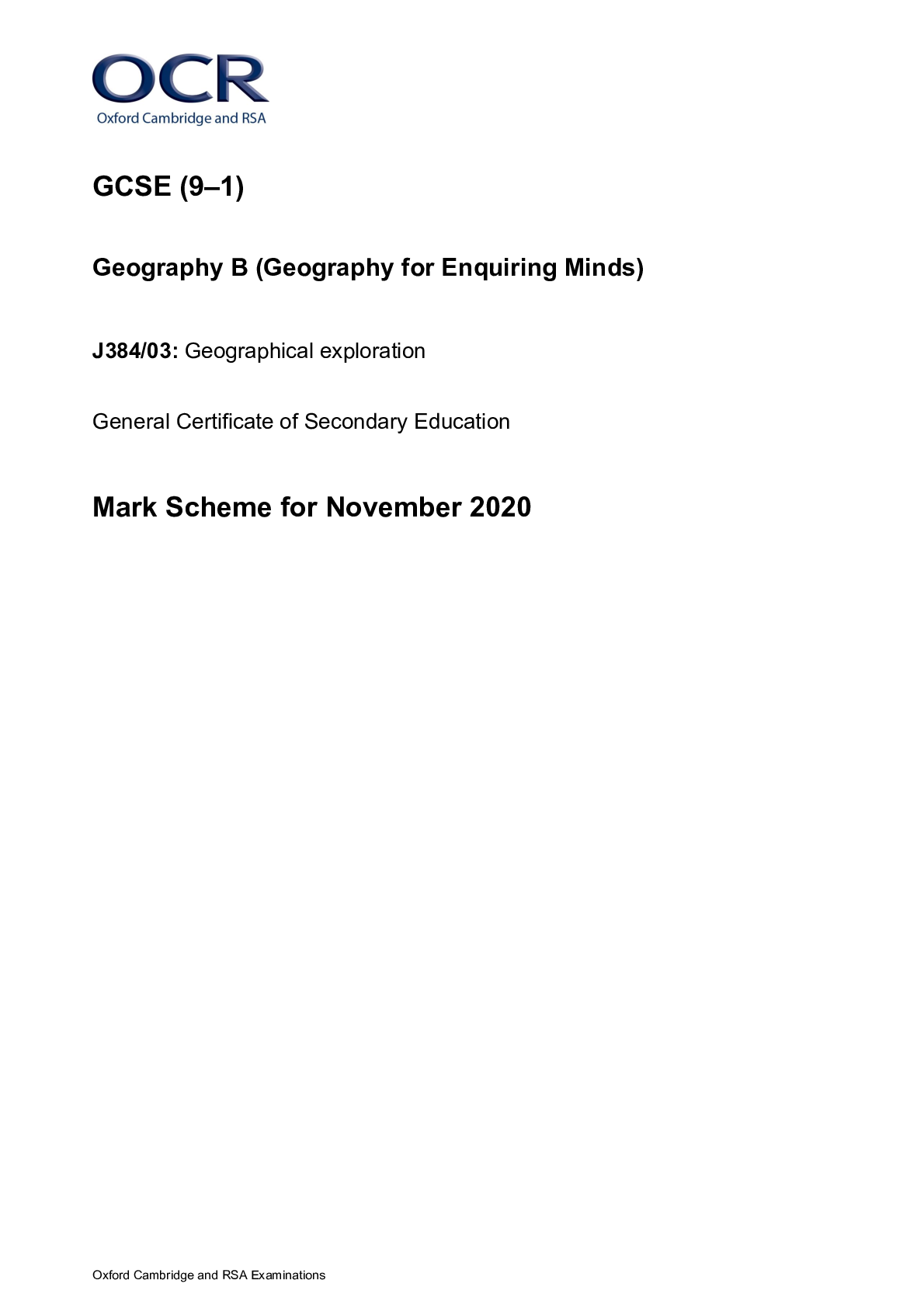 Geography > Higher Education > GCSE (9–1) Geography B _J384/03 Mark Scheme Nov 2020 | Geographical Exploration (All)