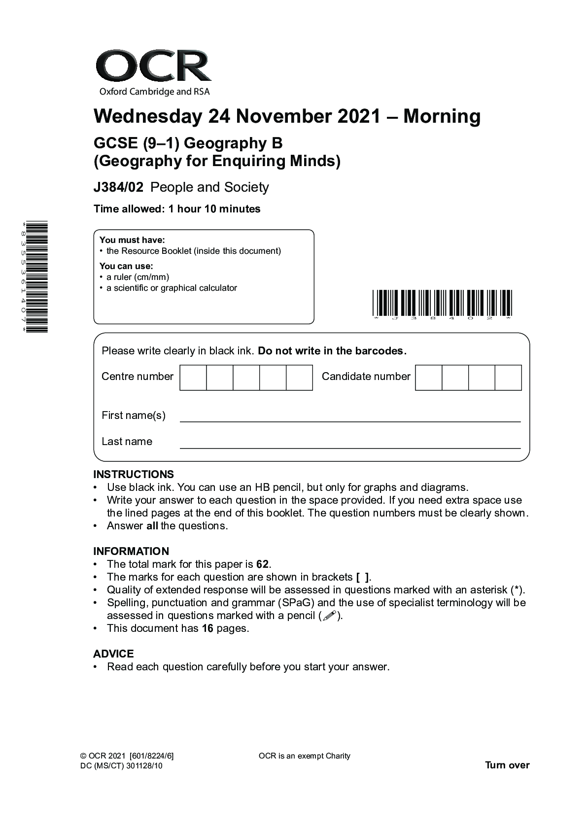 Geography > Higher Education > GCSE (9–1) Geography B_J384/02 Question Paper Oct 2021 | People and Society (All)