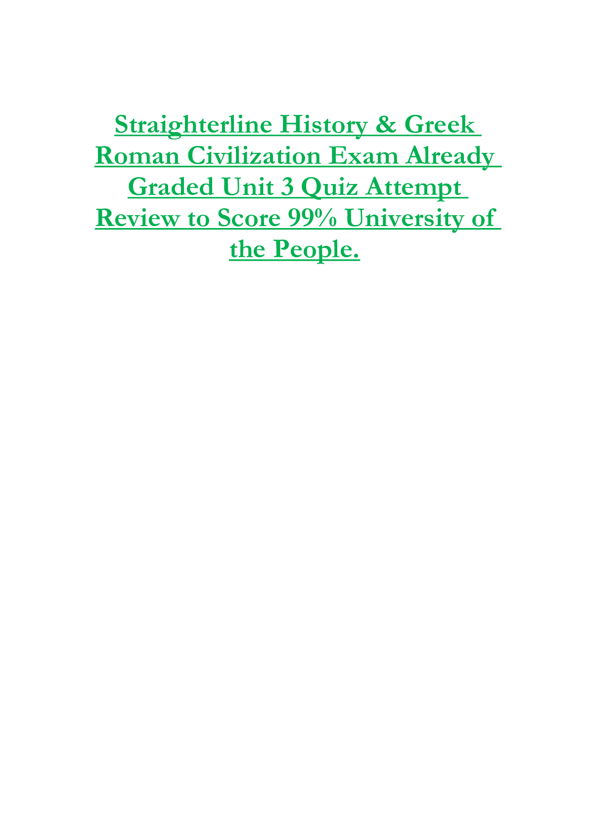 Ancient History > EXAM > Straighterline History & Greek Roman Civilization Exam Already Graded Unit 3 Quiz Attempt Review to Score 99% University of the People (All)