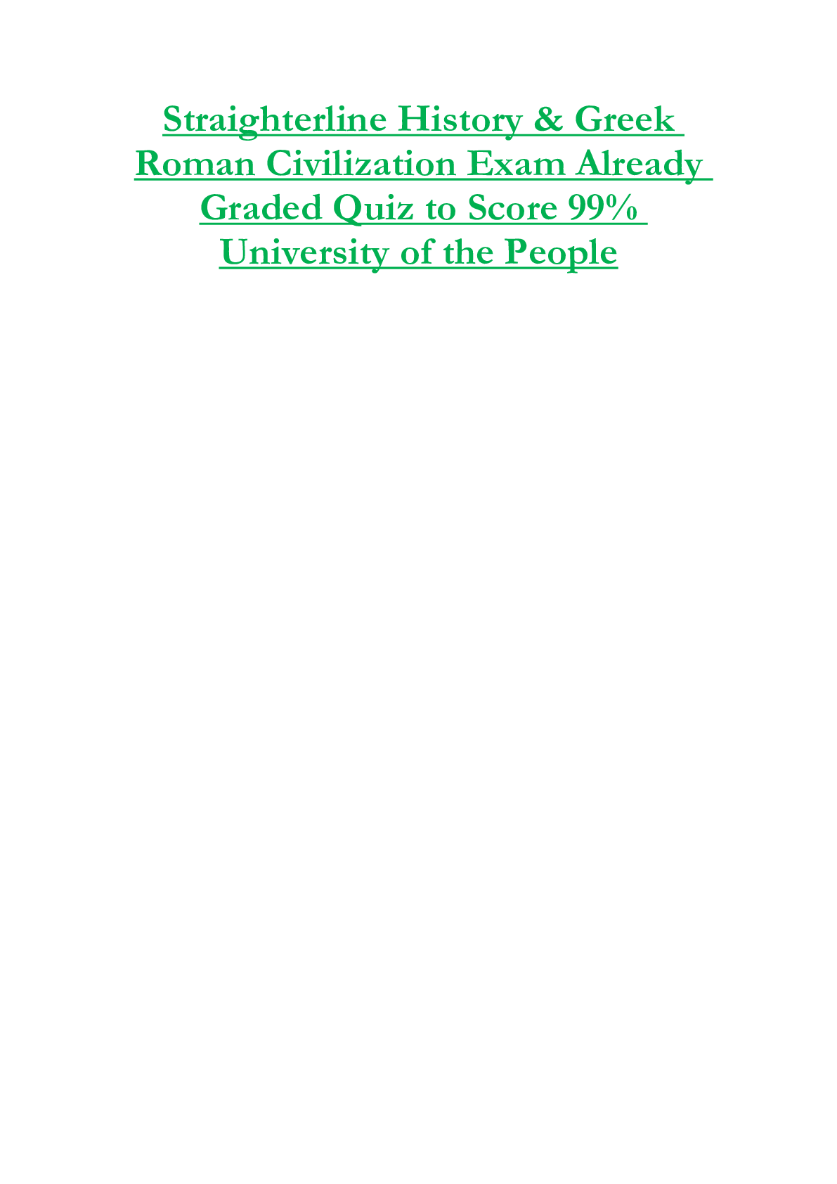 Ancient History > EXAM > Straighterline History & Greek Roman Civilization Exam Already Graded Quiz to Score 99% University of the People (All)