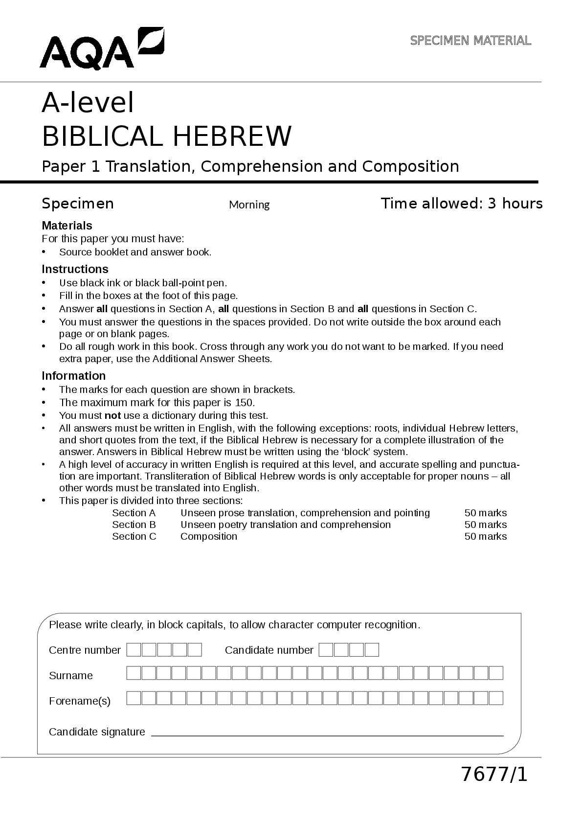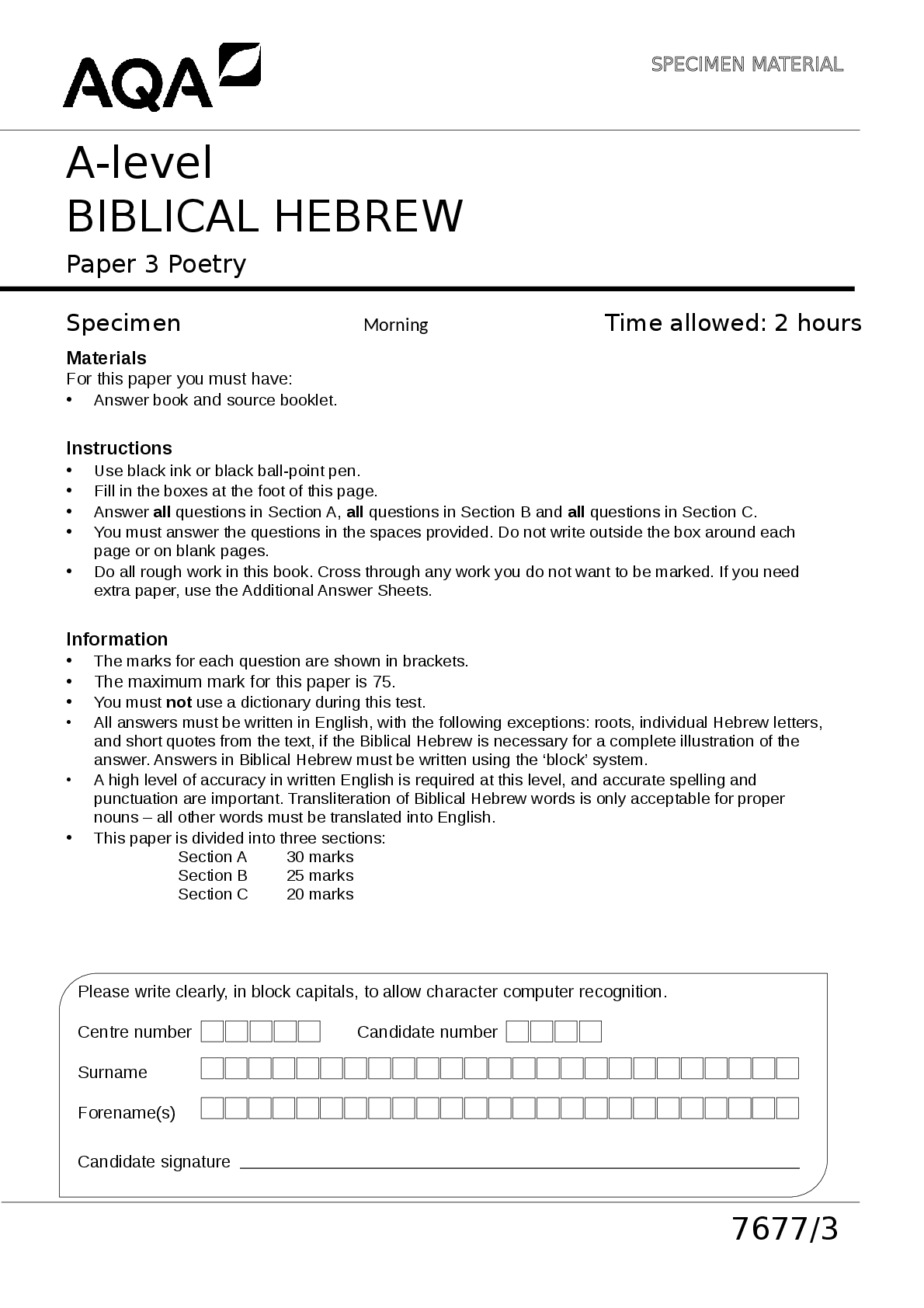 Ancient History > QUESTIONS & ANSWERS > A-level BIBLICAL HEBREW Paper 3 Poetry (All)