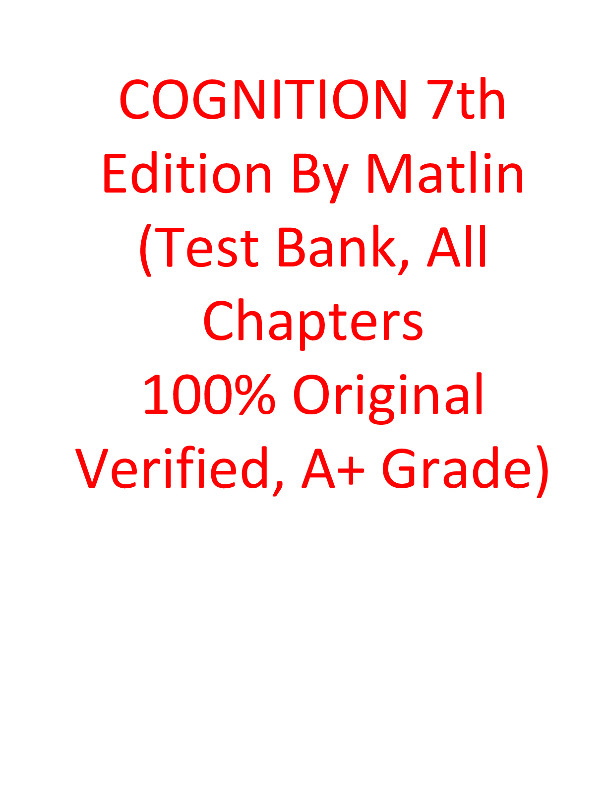 Applied Psychology > TEST BANKS > Test Bank For COGNITION 7th Edition By Matlin (All)