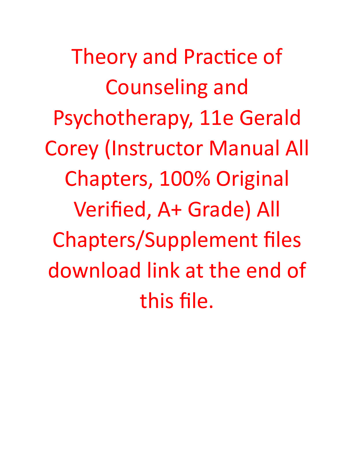 Applied Psychology > INSTRUCTOR MANUALS > Instructor Manual for Theory and Practice of Counseling and Psychotherapy 11th Edition By Gerald Corey (All Chapters, 100% Original Verified, A+ Grade) (All)