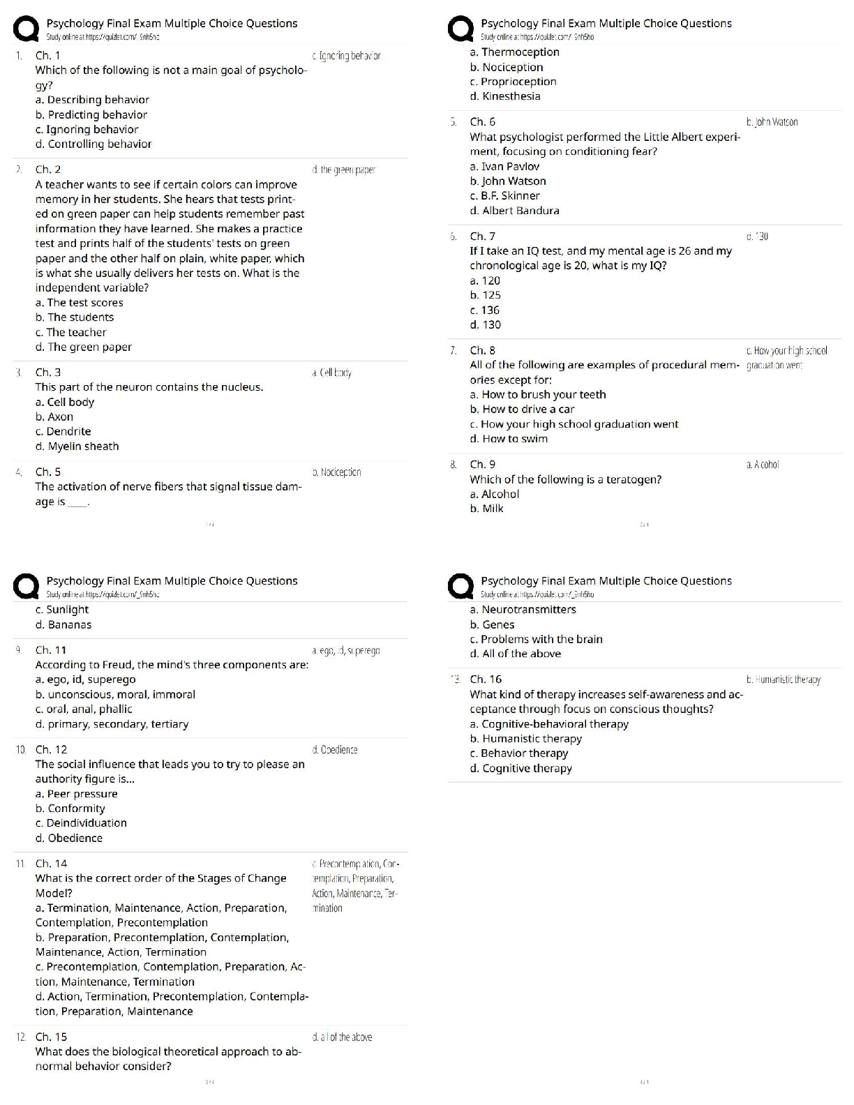 Applied Psychology > QUESTIONS & ANSWERS > Psychology Multiple Choice Q’s / Score 100% / New Version / 2025 Update / Complete Study Guide (All)