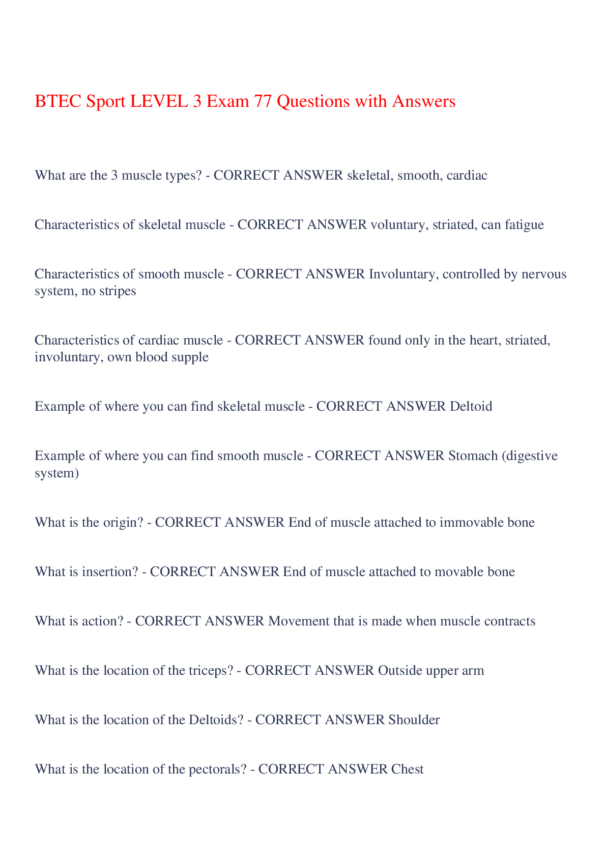 Applied Science > EXAM > BTEC Sport LEVEL 3 Exam 77 Questions with Answers,100% CORRECT (All)