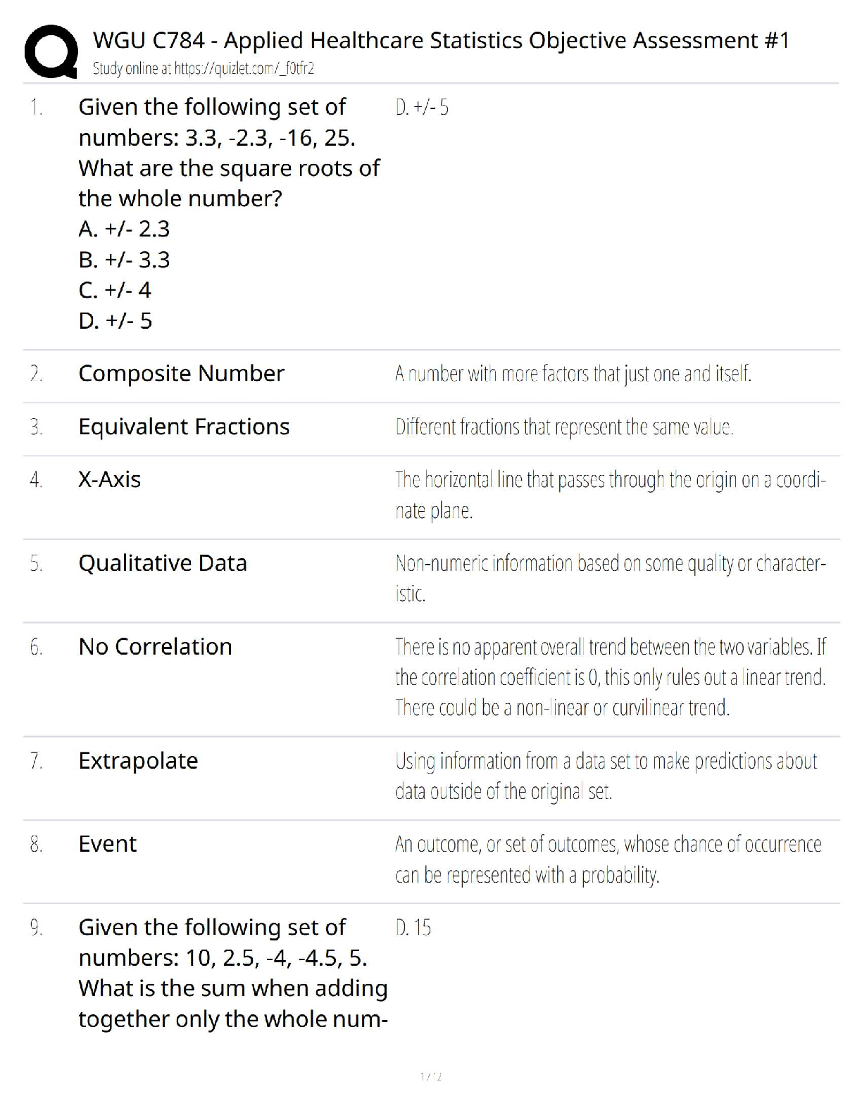 Applied Science > QUESTIONS & ANSWERS > WGU – C784 Applied Healthcare Statistics / 2025 Update / Study Guide, Test Bank & Verified Exam Answers to Score 100% (All)