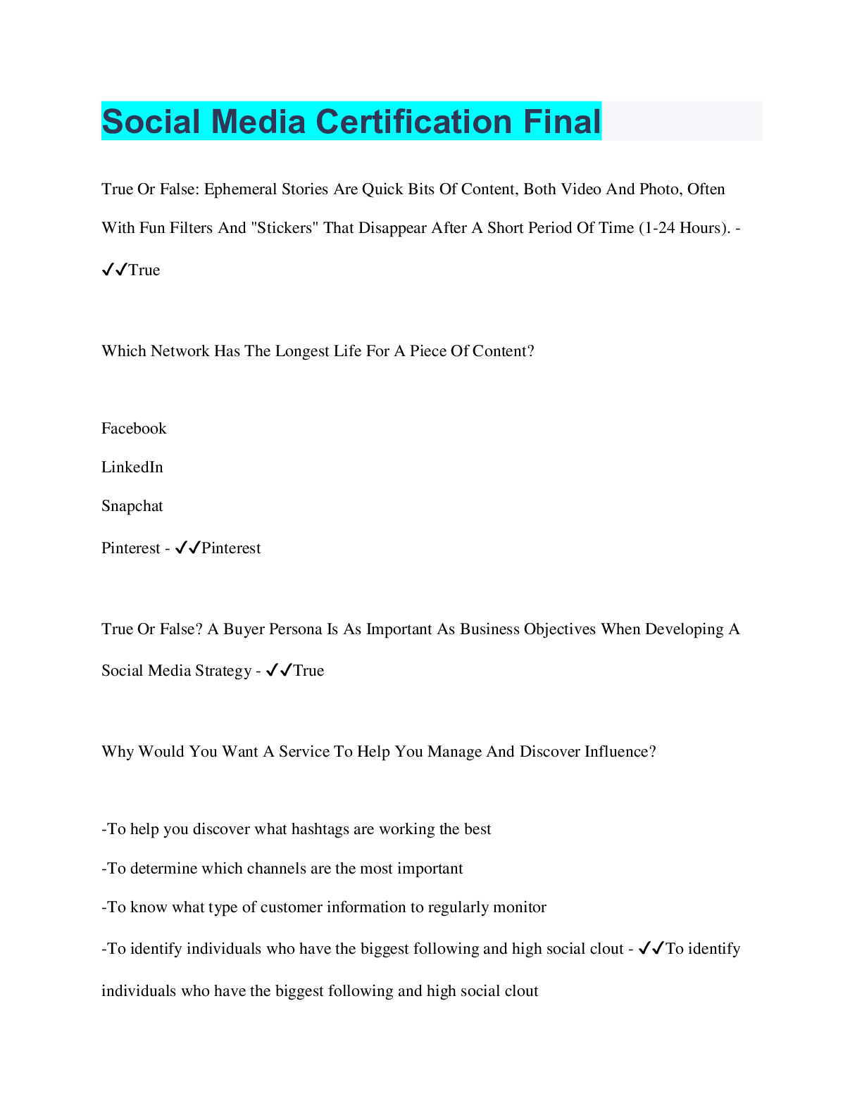 Creative Digital Media > QUESTIONS & ANSWERS > Social Media Certification Final (All)