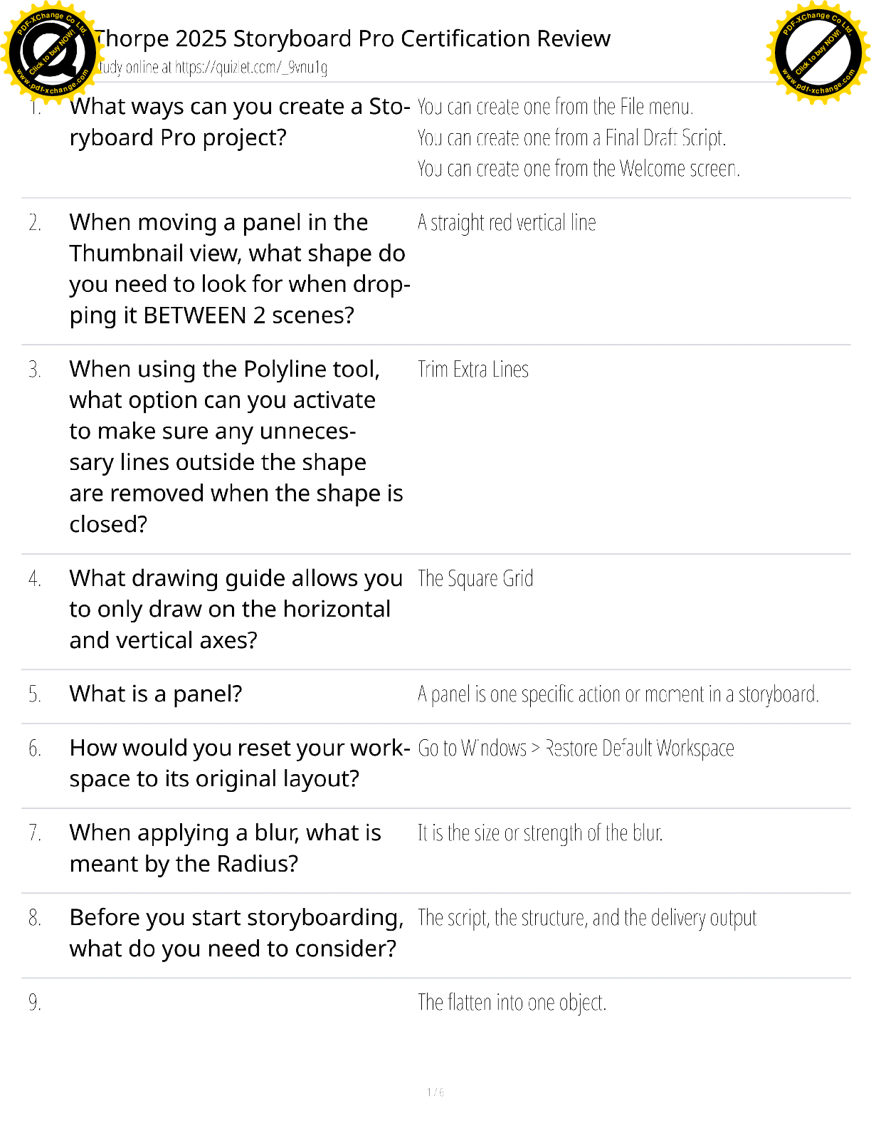 Creative Digital Media > QUESTIONS & ANSWERS > Thorpe 2025 Storyboard Pro Certification / Review & Practice Exam / Score 100% / New Version (All)