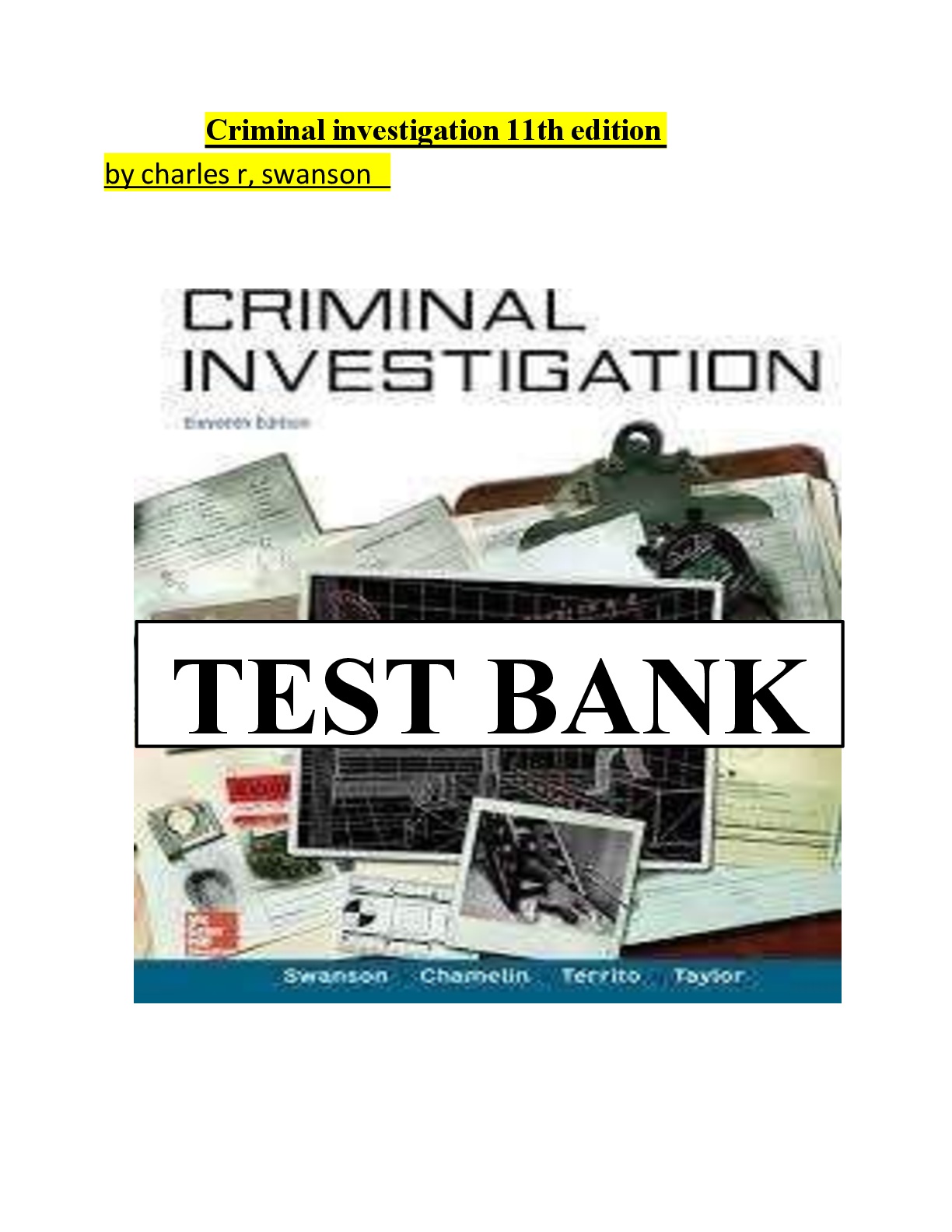 Forensic and Criminal Investigation > TEST BANKS > Test Bank Criminal Investigation 11th Edition by Charles r, Swanson (All)