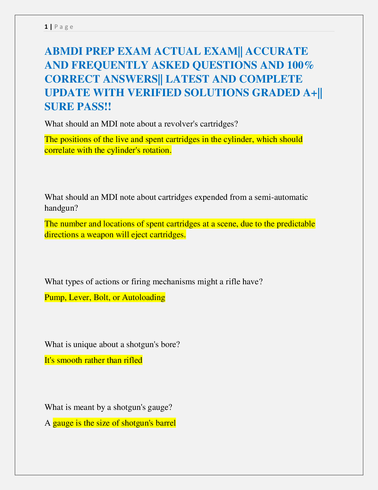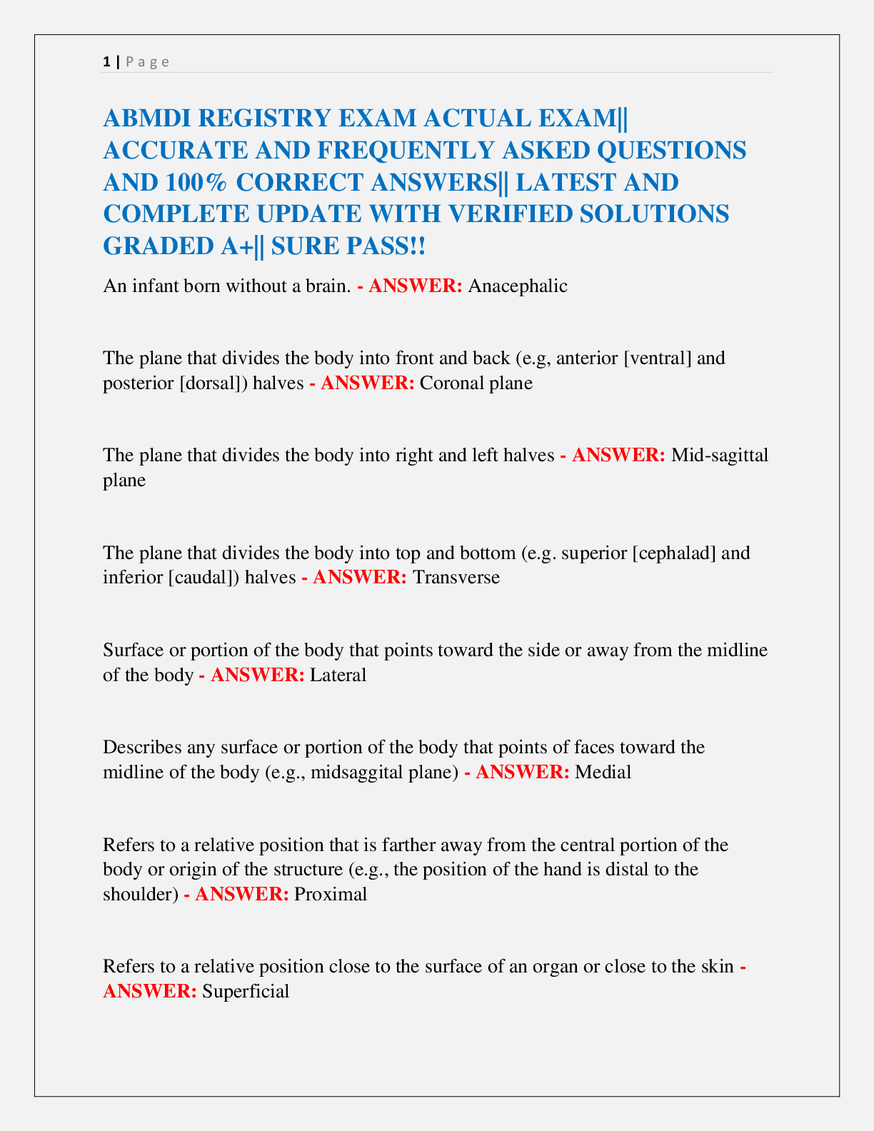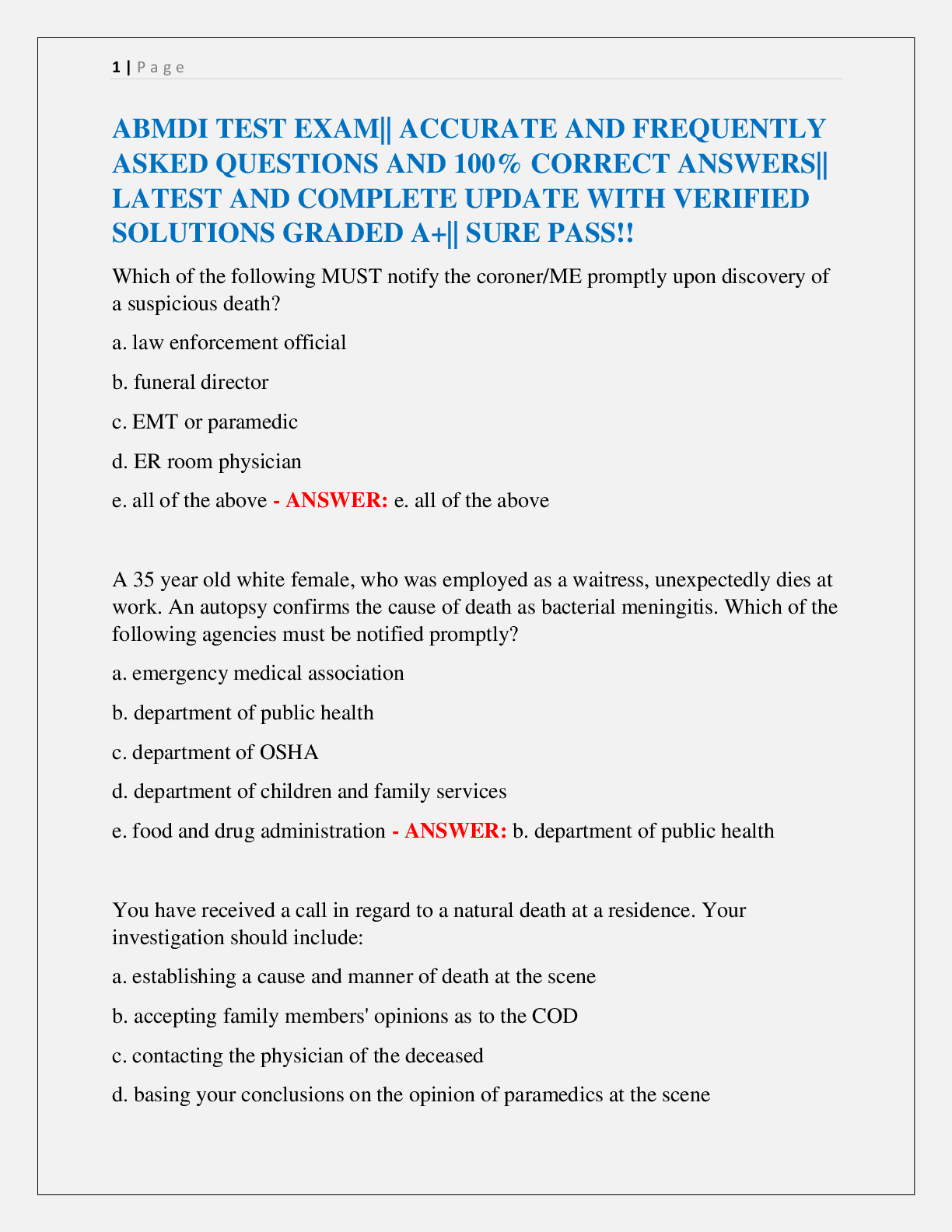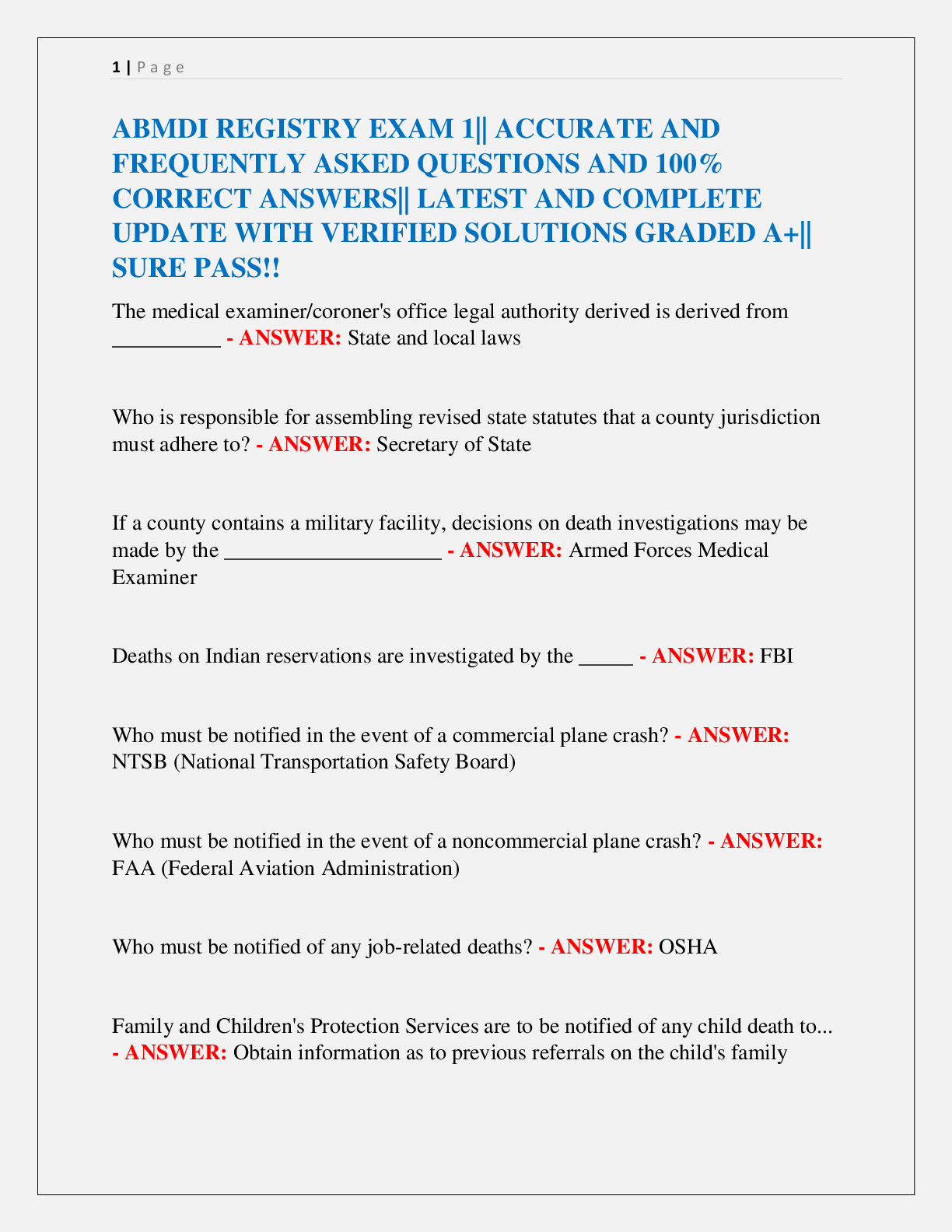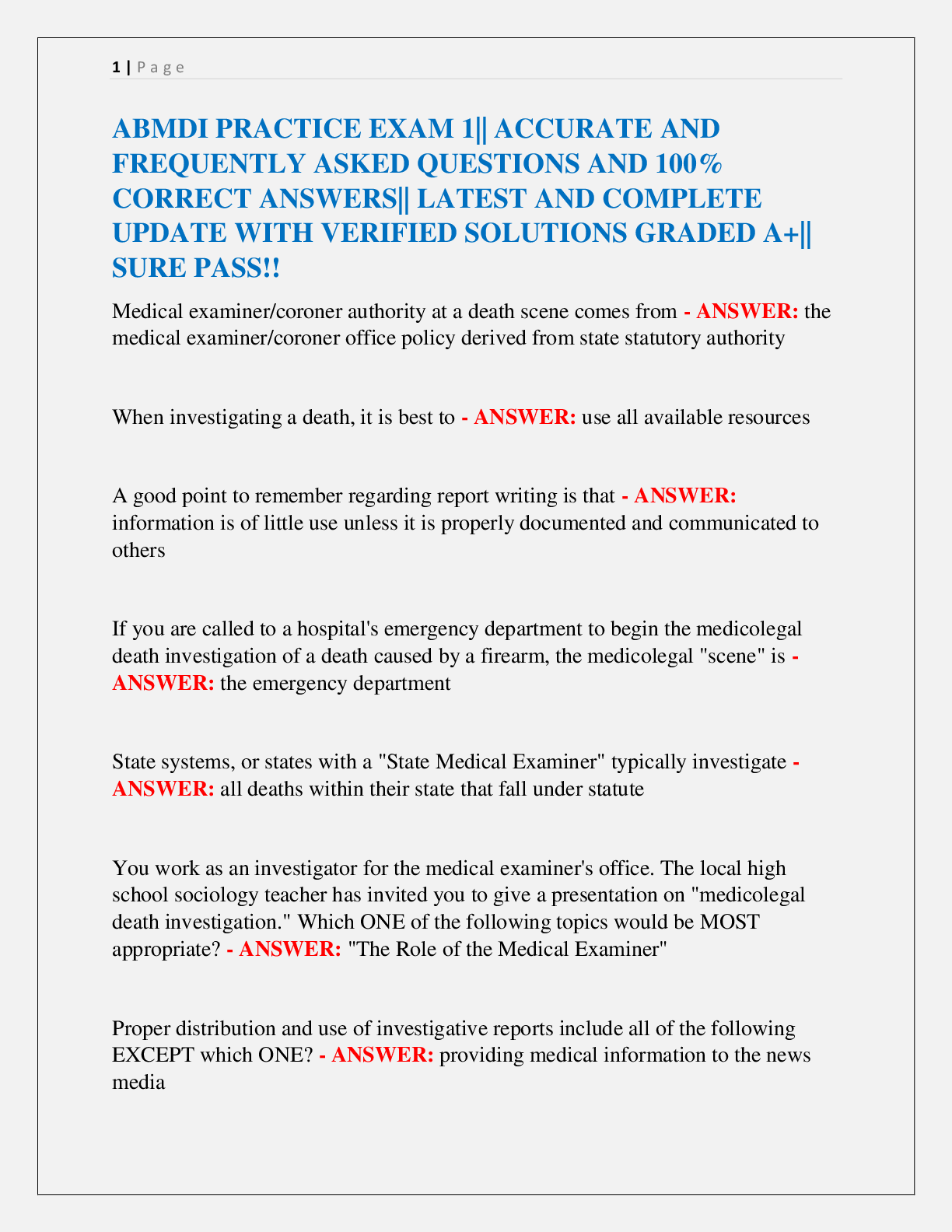 Forensic and Criminal Investigation > EXAM > ABMDI REGISTRY EXAM 1|| ACCURATE AND FREQUENTLY ASKED QUESTIONS AND 100% CORRECT ANSWERS|| LATEST AND COMPLETE UPDATE WITH VERIFIED SOLUTIONS GRADED A+|| SURE PASS!! (All)