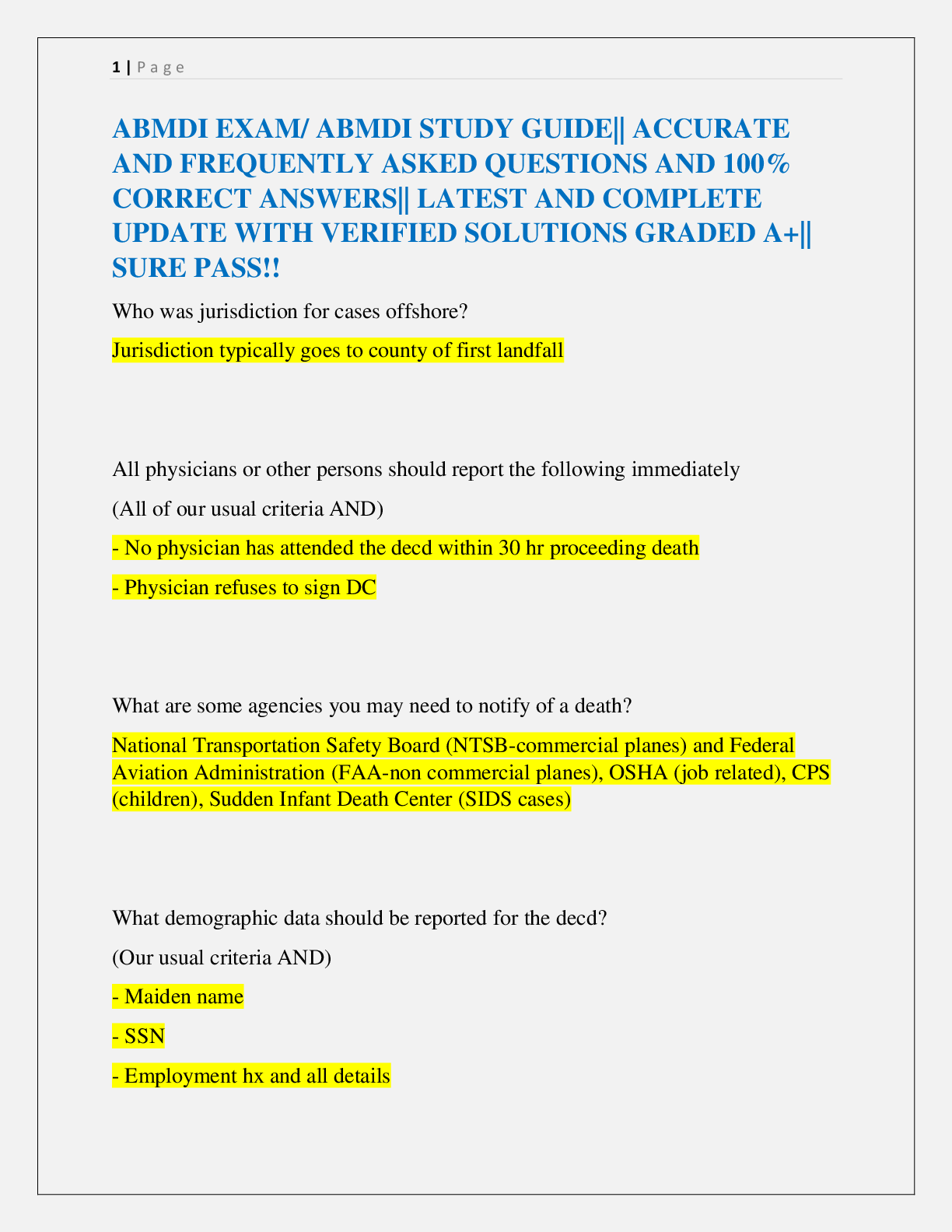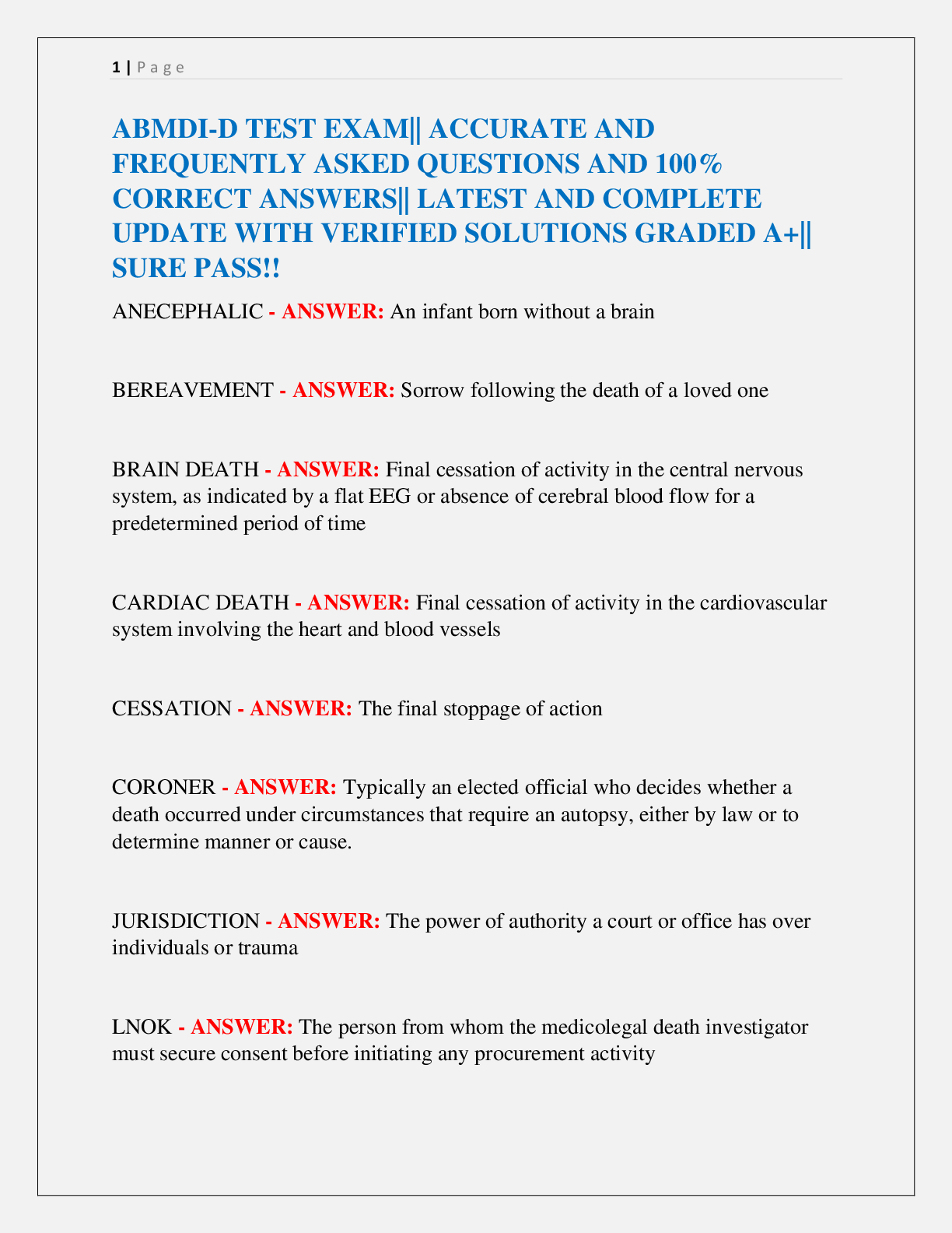 Forensic and Criminal Investigation > EXAM > ABMDI EXAM/ ABMDI STUDY GUIDE|| ACCURATE AND FREQUENTLY ASKED QUESTIONS AND 100% CORRECT ANSWERS|| LATEST AND COMPLETE UPDATE WITH VERIFIED SOLUTIONS GRADED A+|| SURE PASS!! (All)