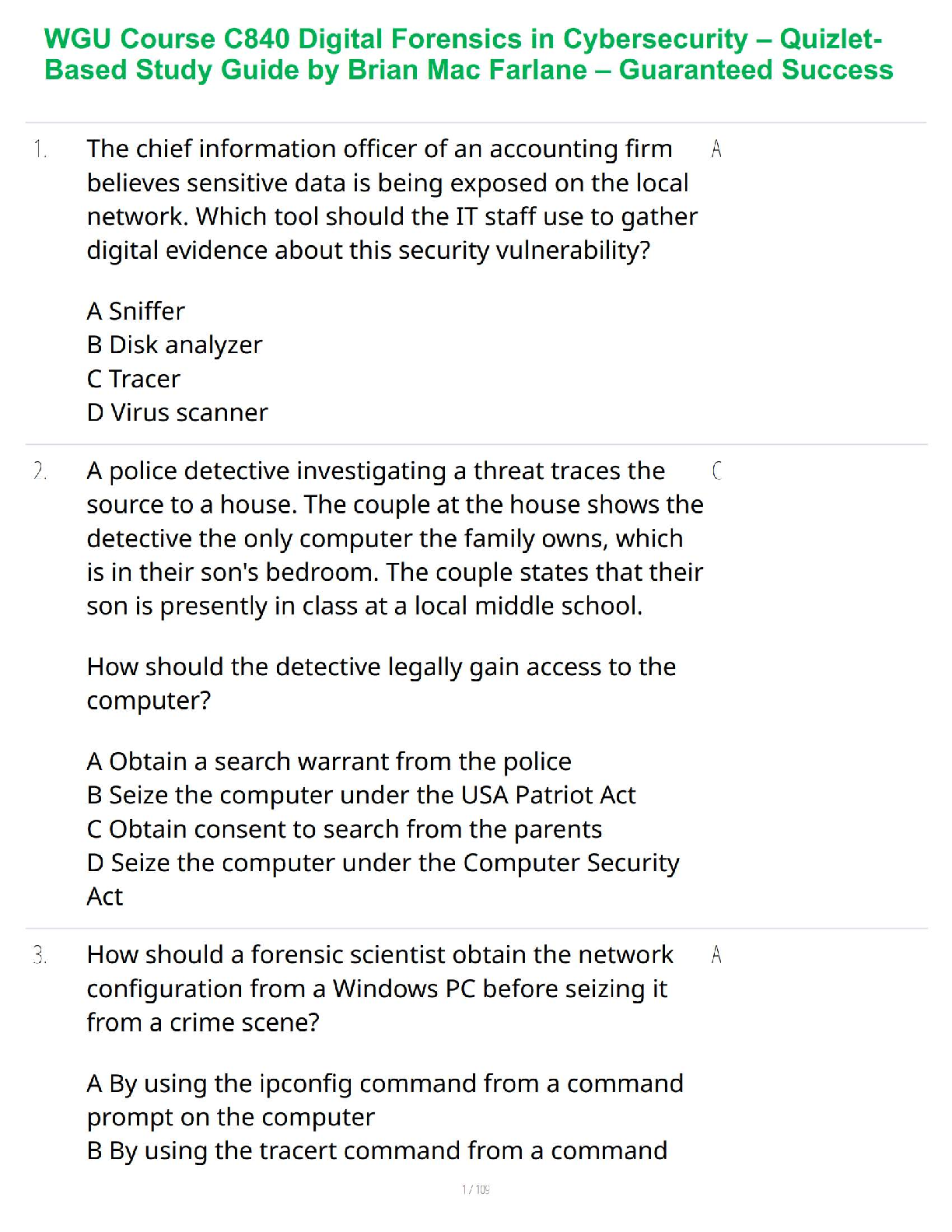 Forensic and Criminal Investigation > STUDY GUIDE > WGU Course C840 Digital Forensics in Cybersecurity – Quizlet-Based Study Guide by Brian Mac Farlane – Guaranteed Success (All)