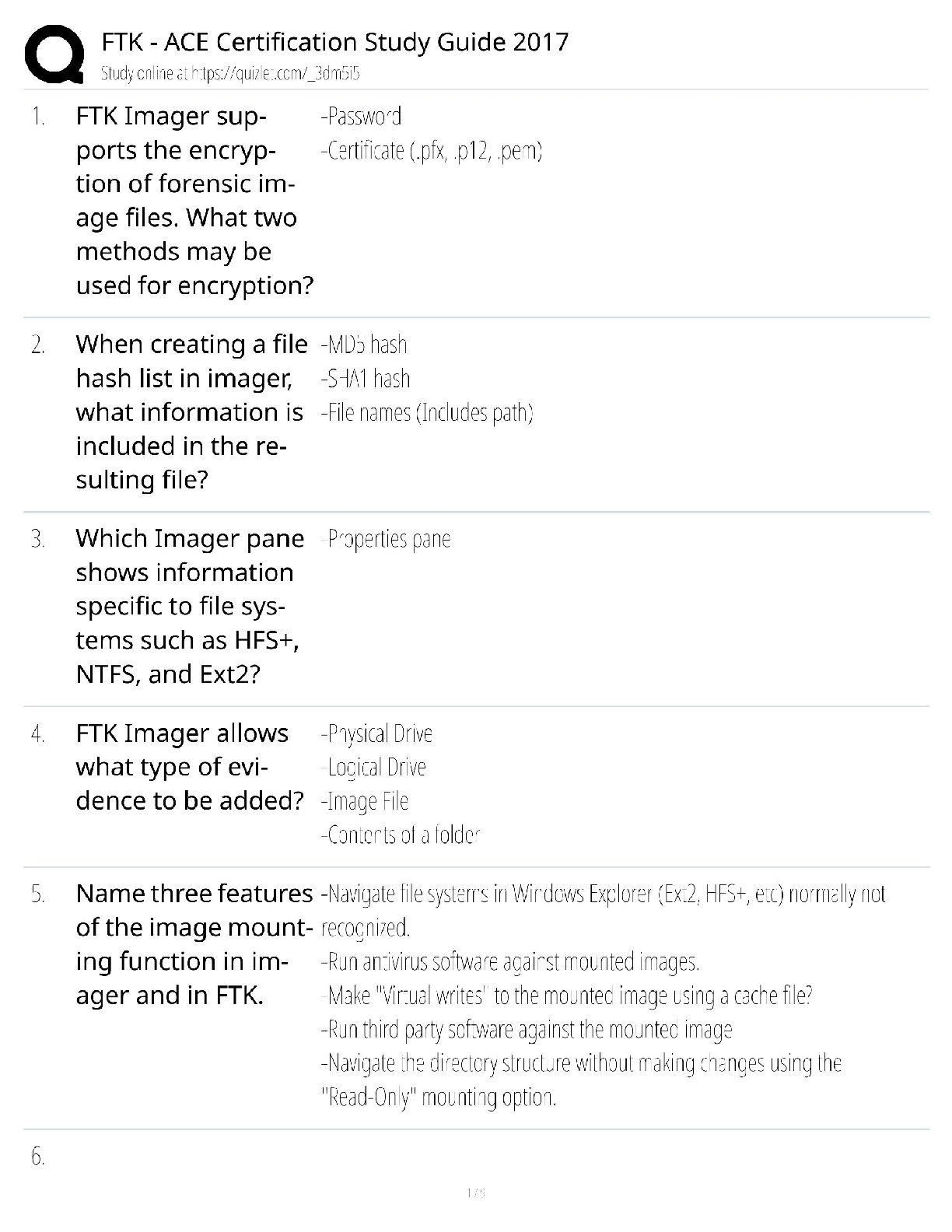 Forensic and Criminal Investigation > QUESTIONS & ANSWERS > FTK ACE Certification Study Guide 2017 / 2025 Updated Exam Prep / Score 100% Test Bank & Practice Questions (All)