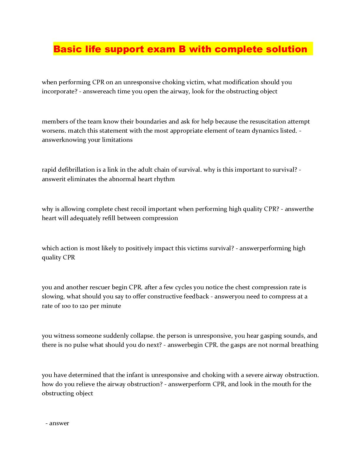 Health Care > QUESTIONS & ANSWERS > Basic life support exam B with complete solution (All)