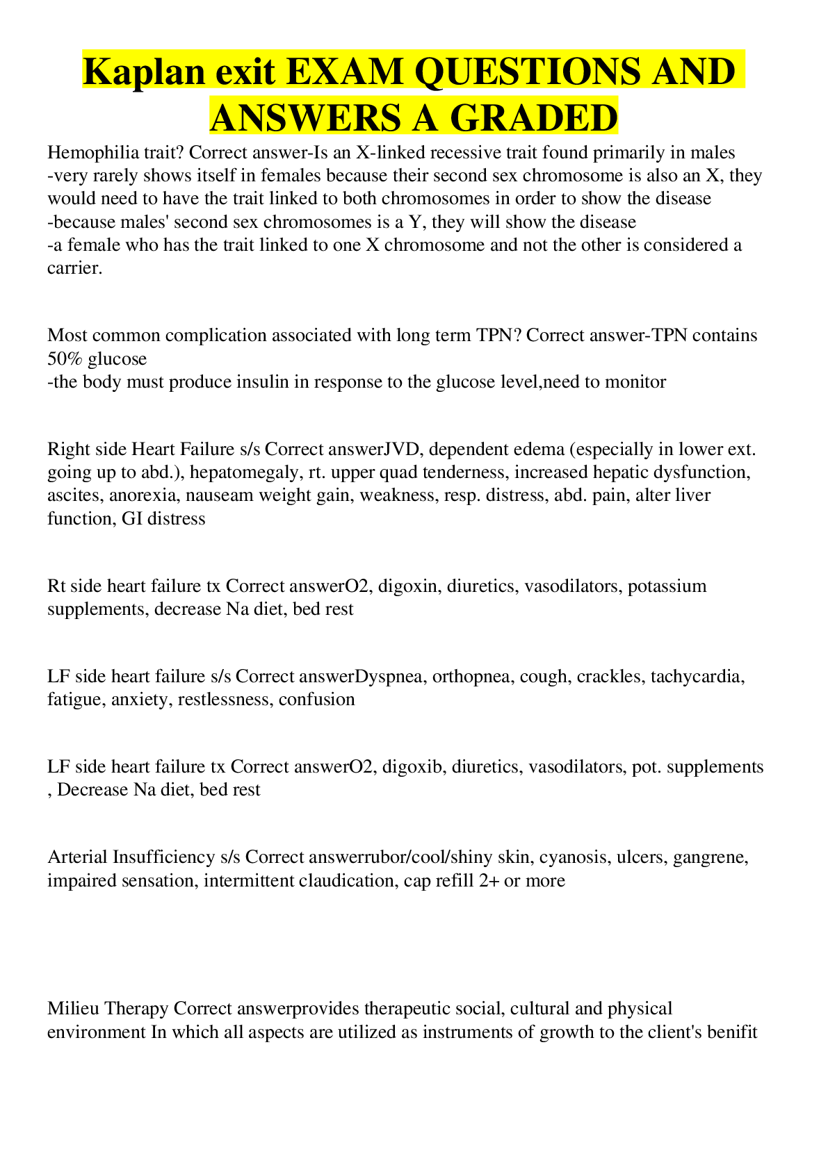 Health Care > EXAM > Kaplan exit EXAM QUESTIONS AND ANSWERS A GRADED (All)