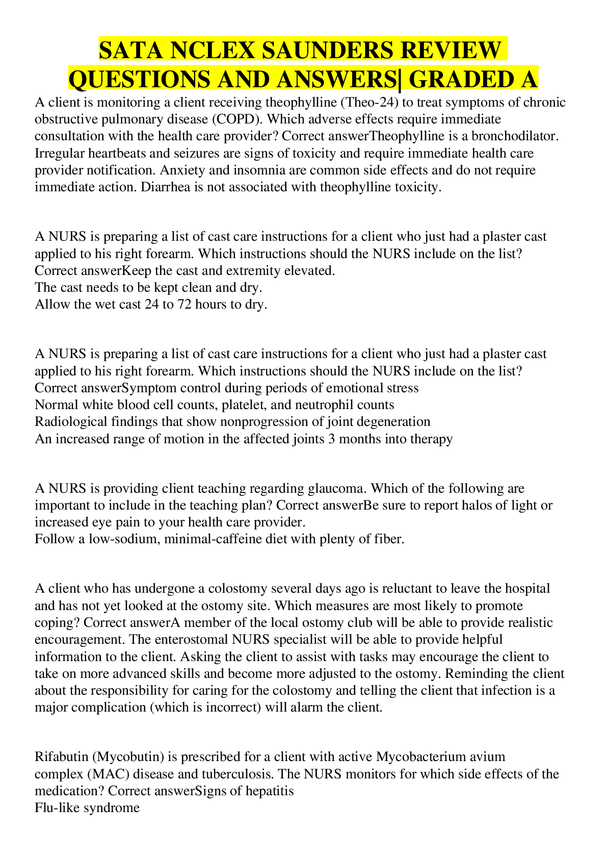Health Care > EXAM > SATA NCLEX SAUNDERS REVIEW QUESTIONS AND ANSWERS| GRADED A (All)