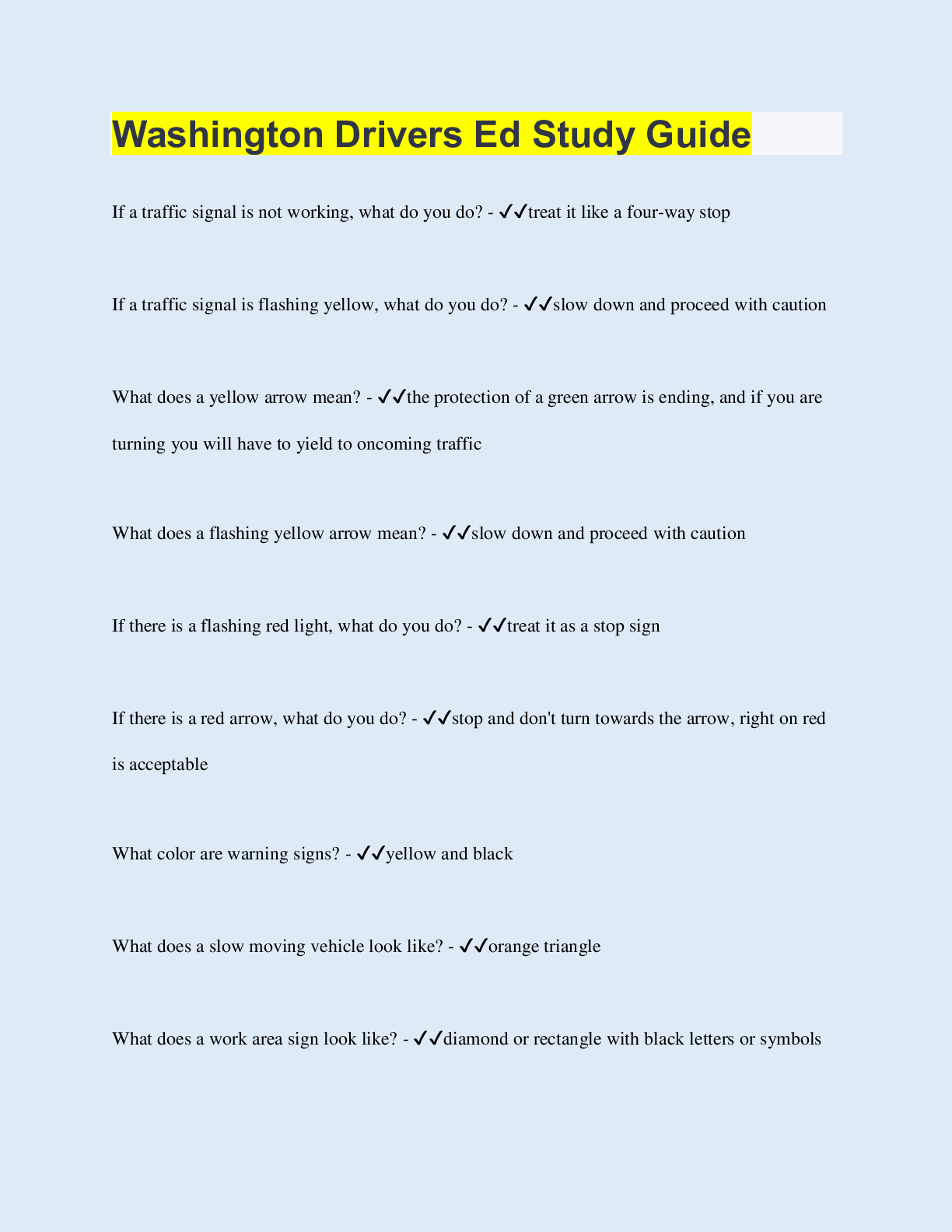Driving Course > QUESTIONS & ANSWERS > Washington Drivers Ed Study Guide (All)
