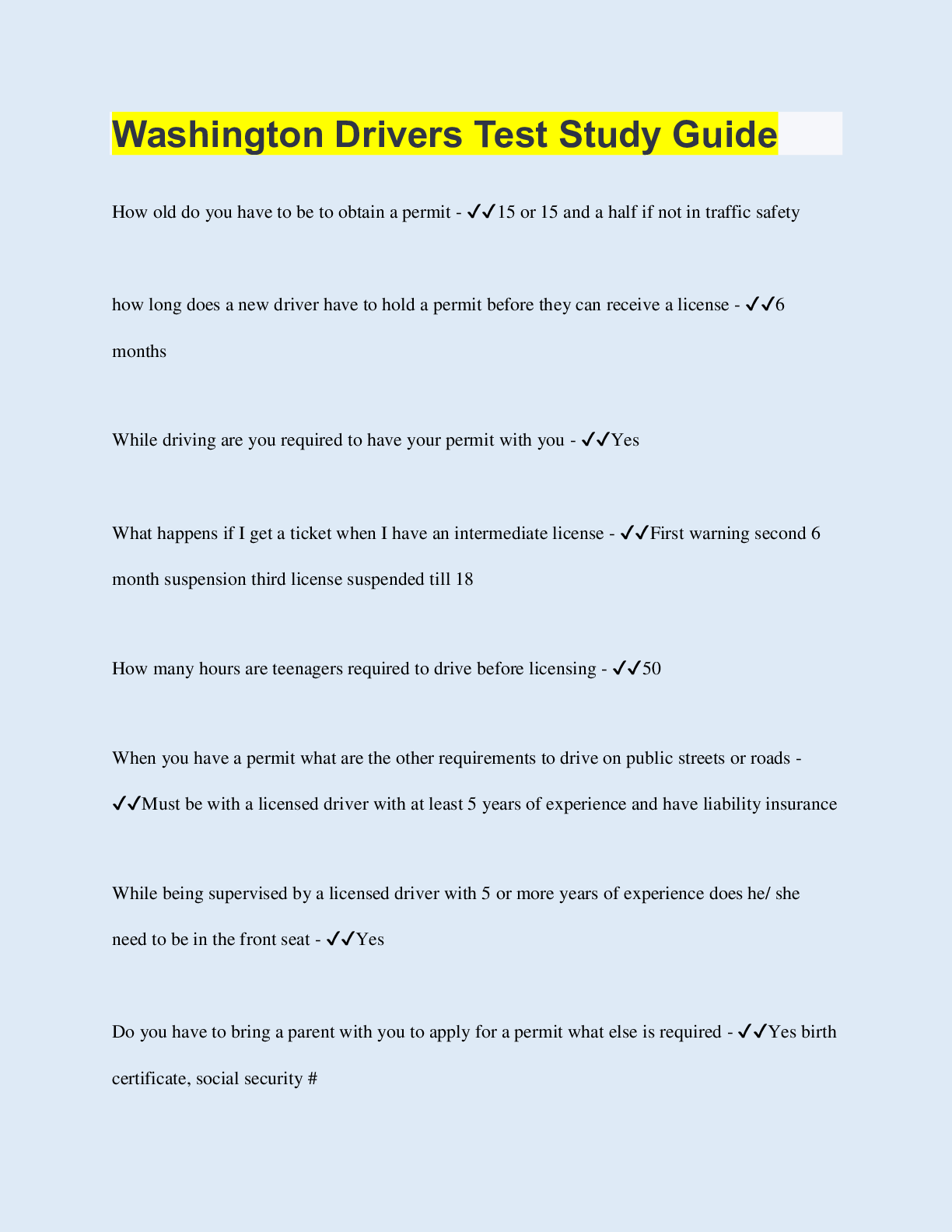 Driving Course > QUESTIONS & ANSWERS > Washington Permit Test (All)