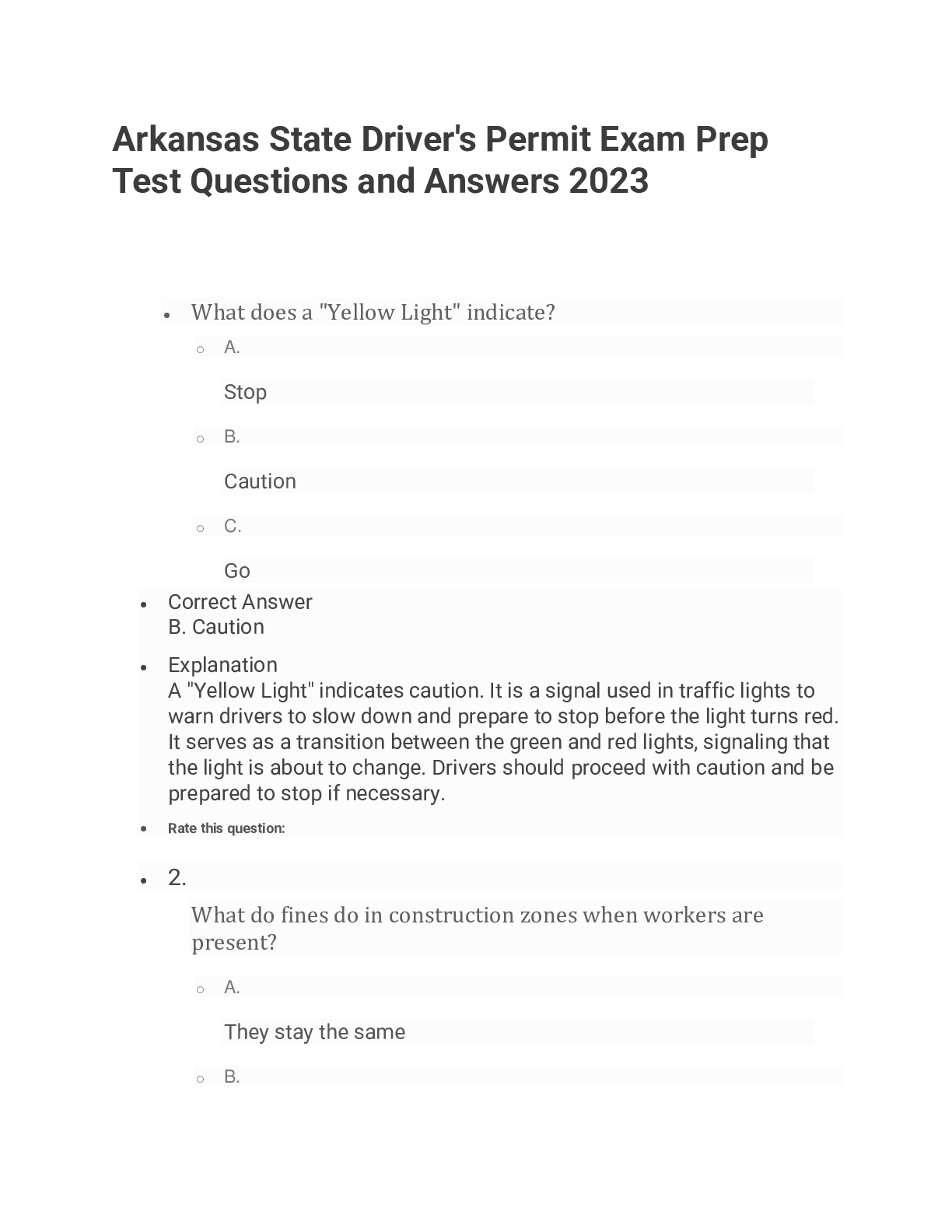 Driving Course > EXAM > Arkansas State Driver's Permit Exam Prep Test Questions and Answers 2023 (All)