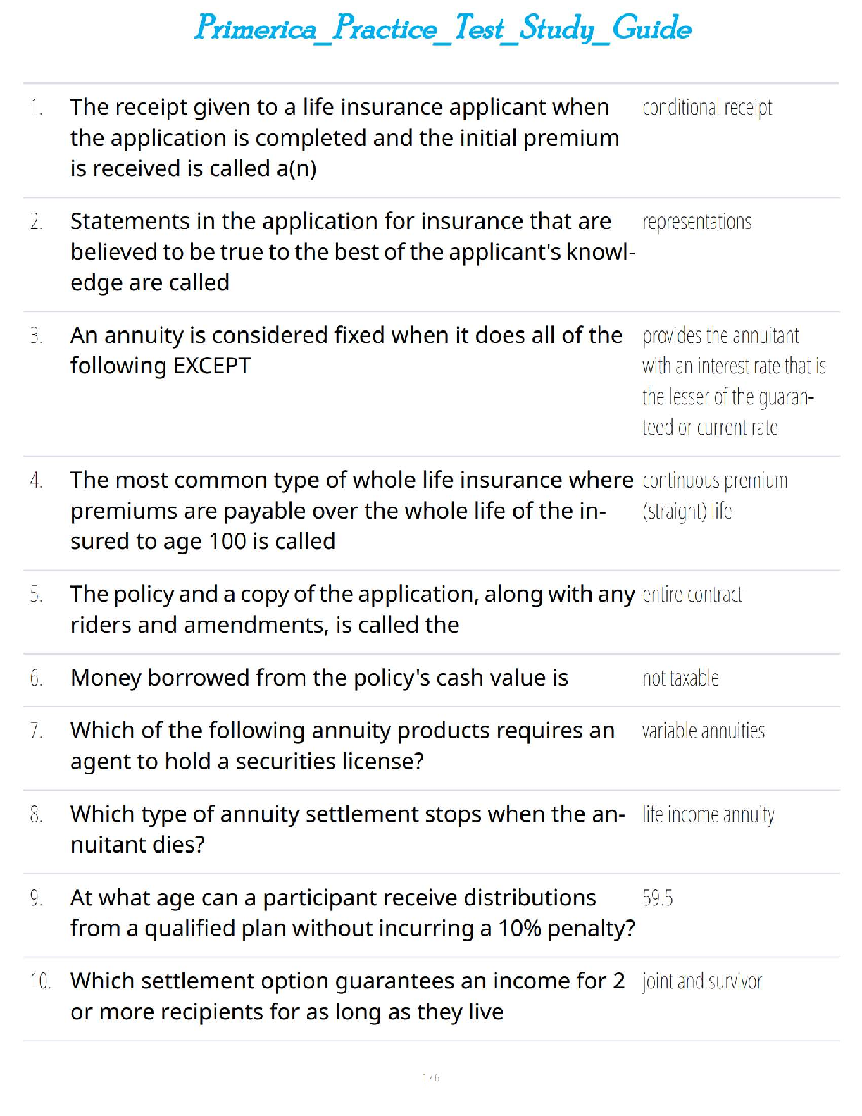 Driving Course > STUDY GUIDE > Primerica Practice Test Study Guide (All)
