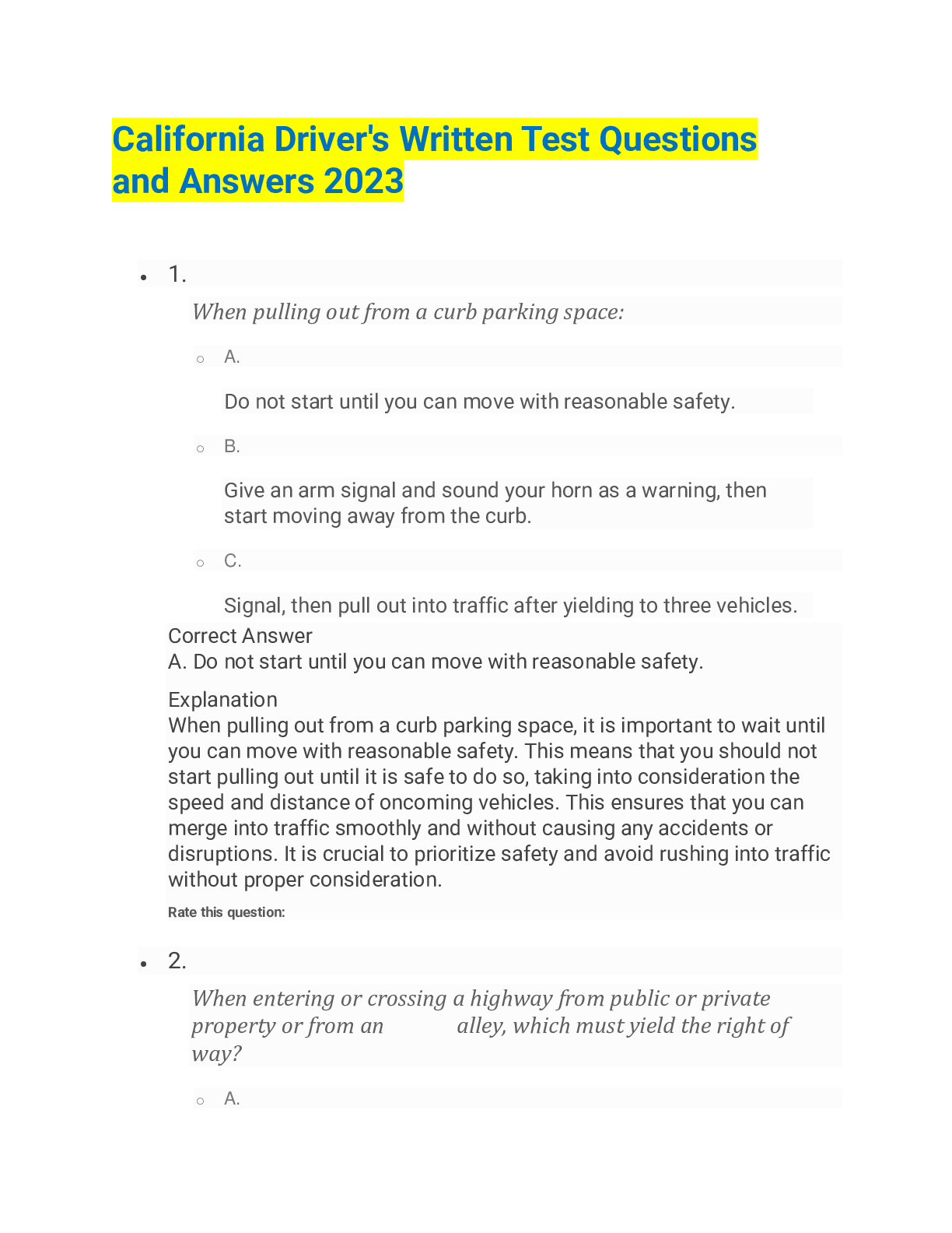 Driving Course > QUESTIONS & ANSWERS > DMV CA PERMIT TEST Questions and answers. Rated A+. 100% pass rate (All)