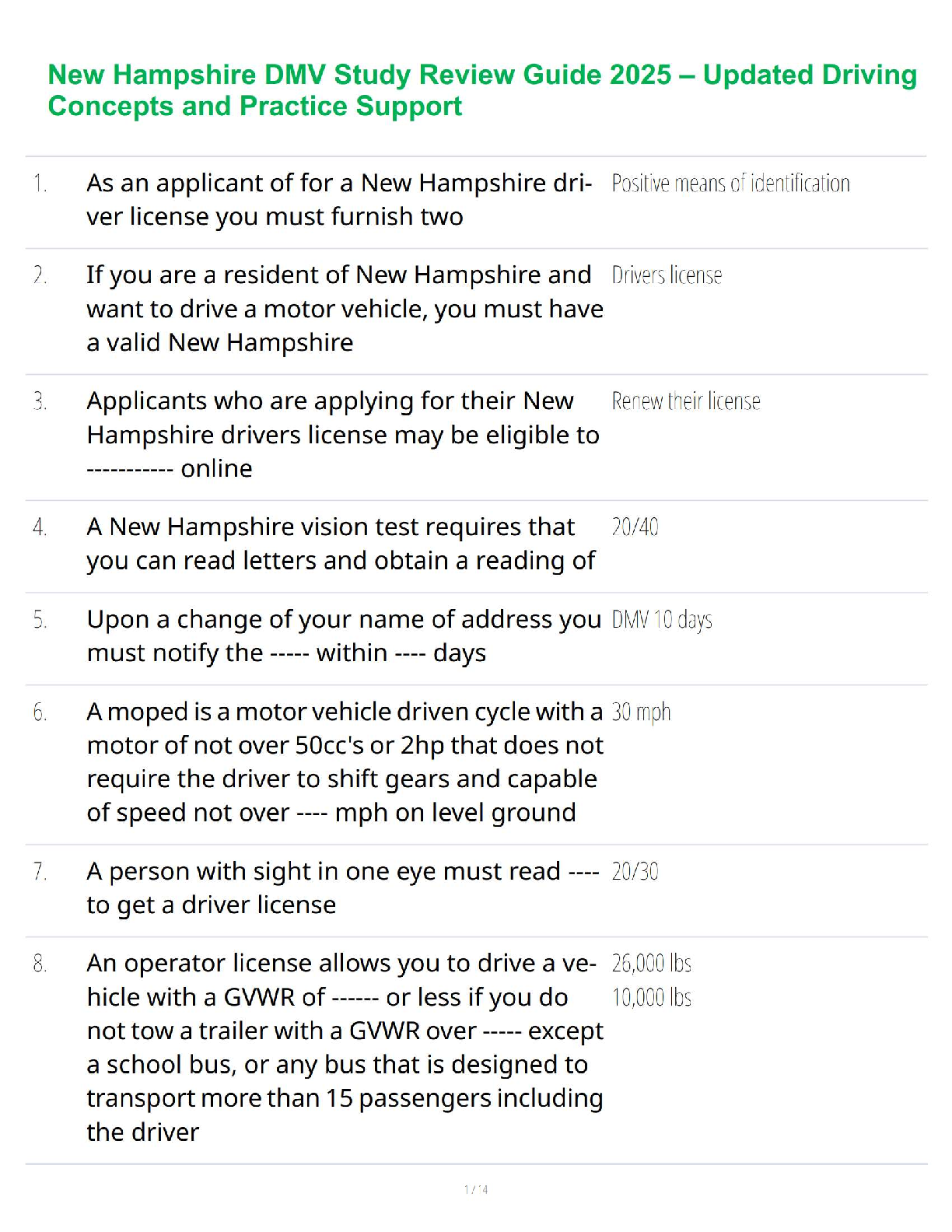 Driving Course > STUDY GUIDE > New Hampshire DMV Study Review Guide 2025 – Updated Driving Concepts and Practice Support (All)