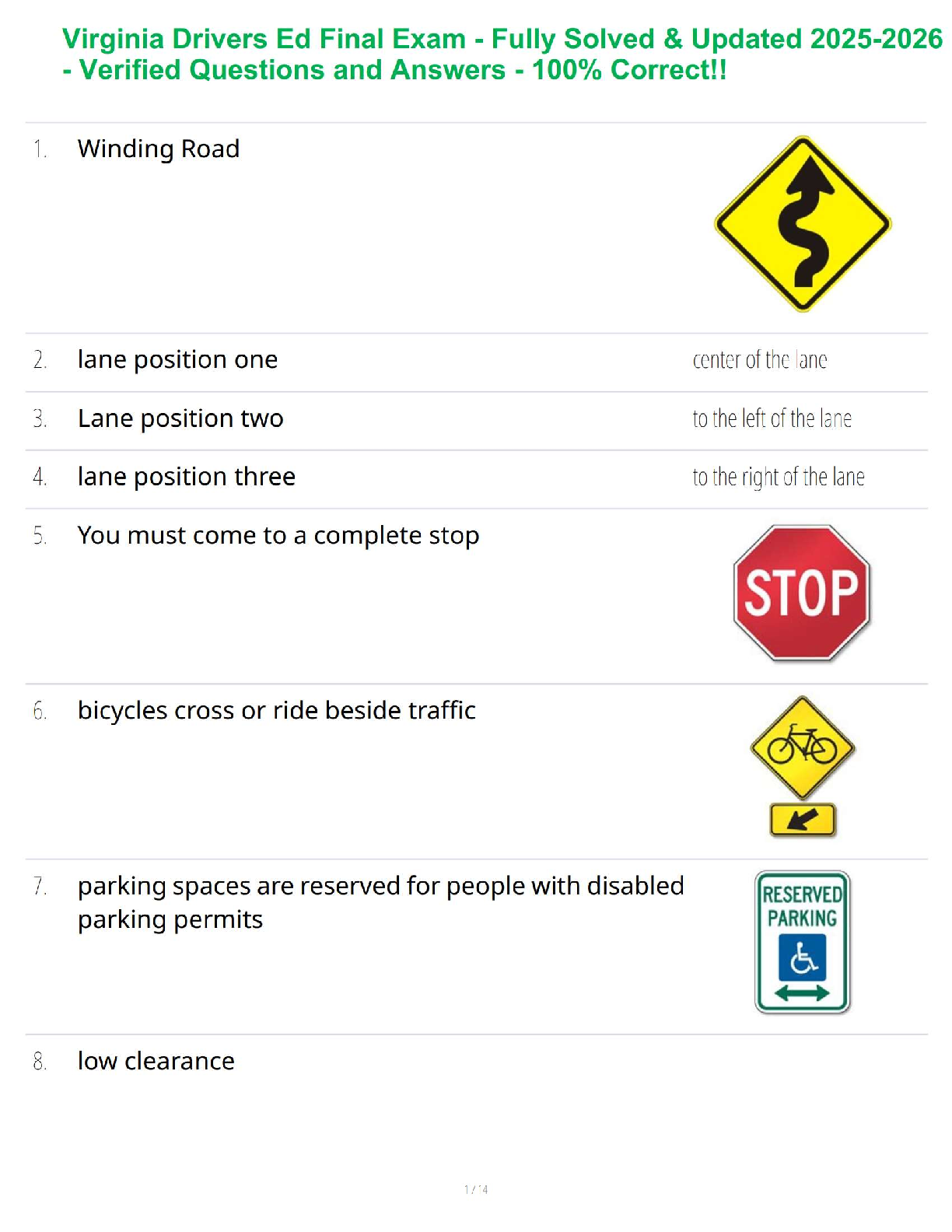 Driving Course > QUESTIONS & ANSWERS > Virginia Drivers Ed Final Exam - Fully Solved & Updated 2025-2026 - Verified Questions and Answers - 100% Correct!! (All)