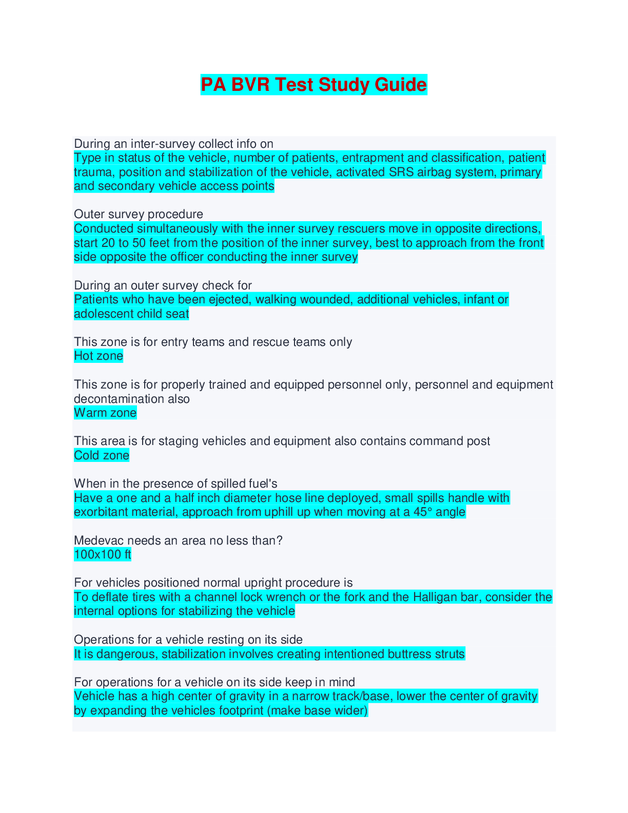 Driving Course > EXAM > PA BVR Test Study Guide - Questions and Answers (All)