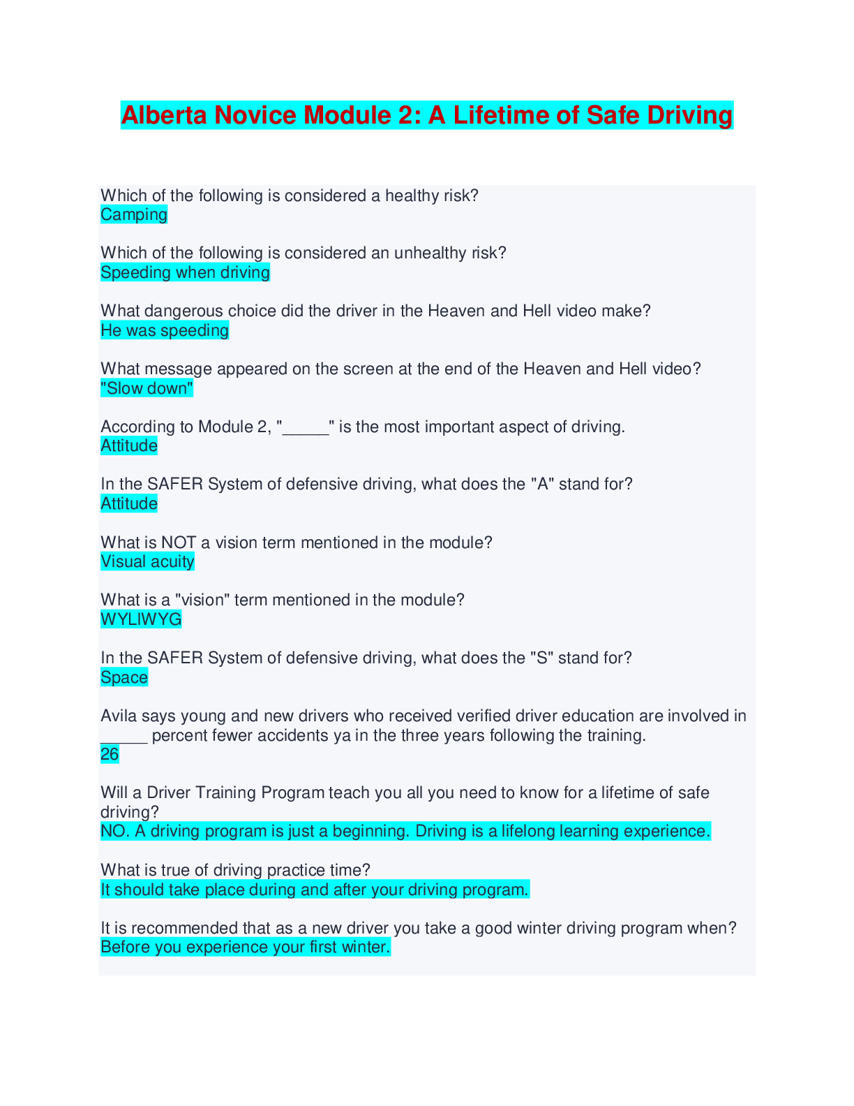 Driving Course > EXAM > Alberta Novice Module 2: A Lifetime of Safe Driving - Q & A (All)