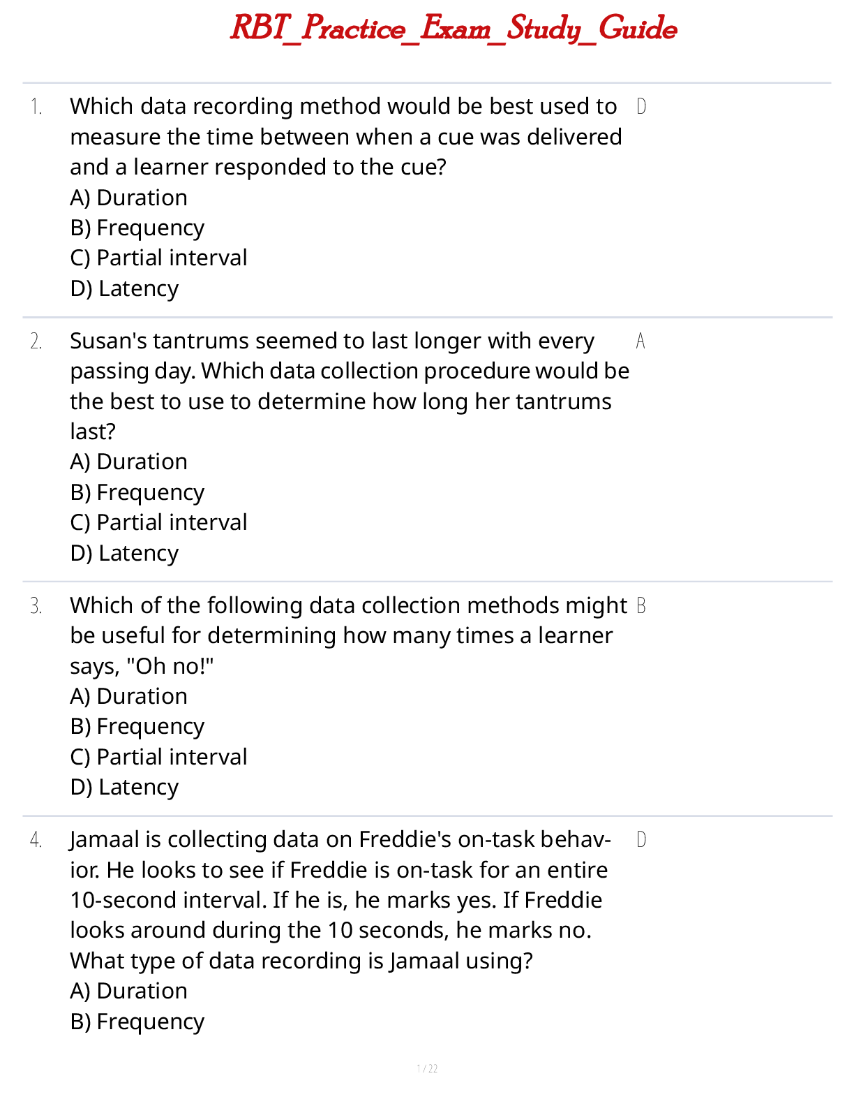 Registered Behaviour Technician (RBT) > STUDY GUIDE > RBT Practice Exam Study Guide (All)
