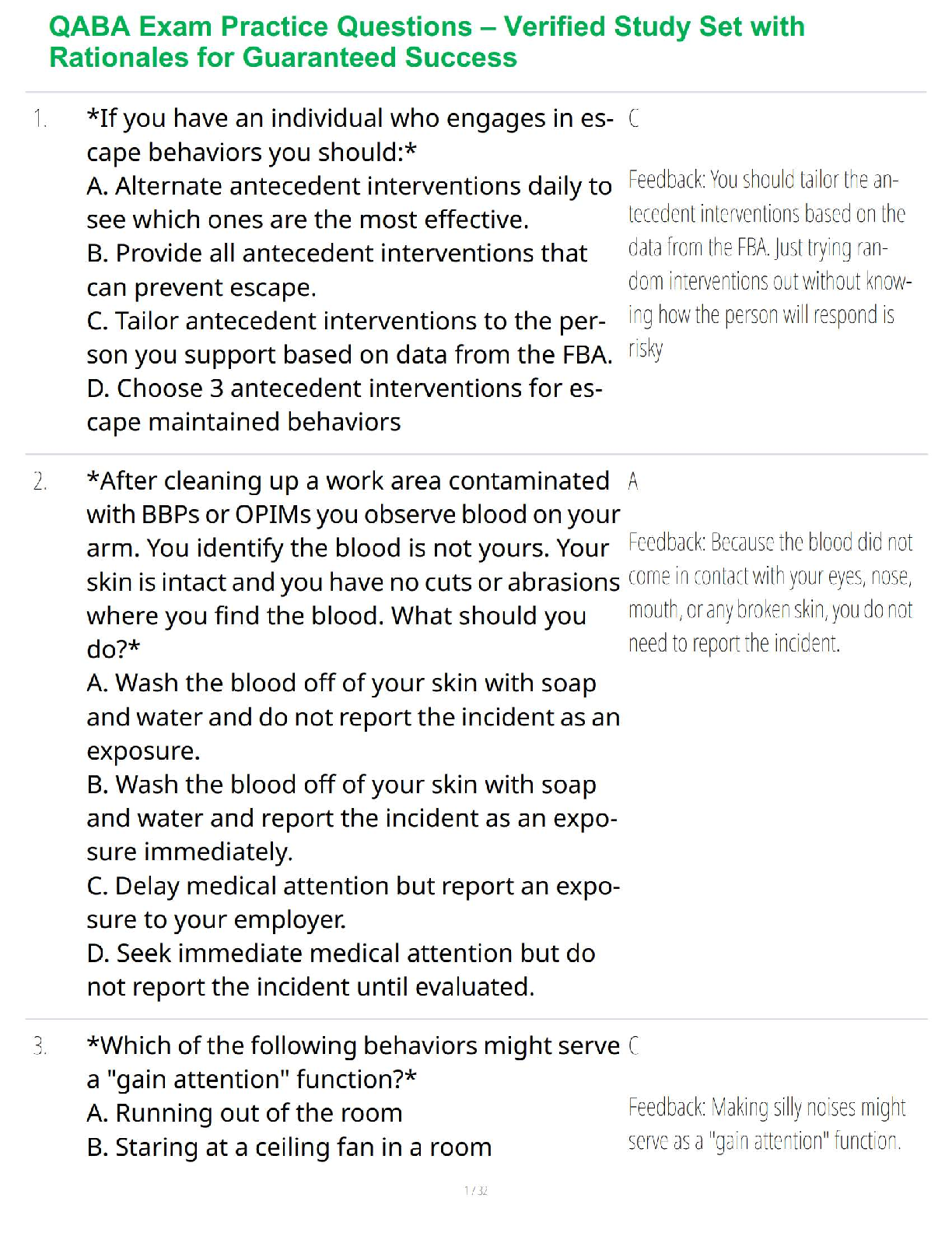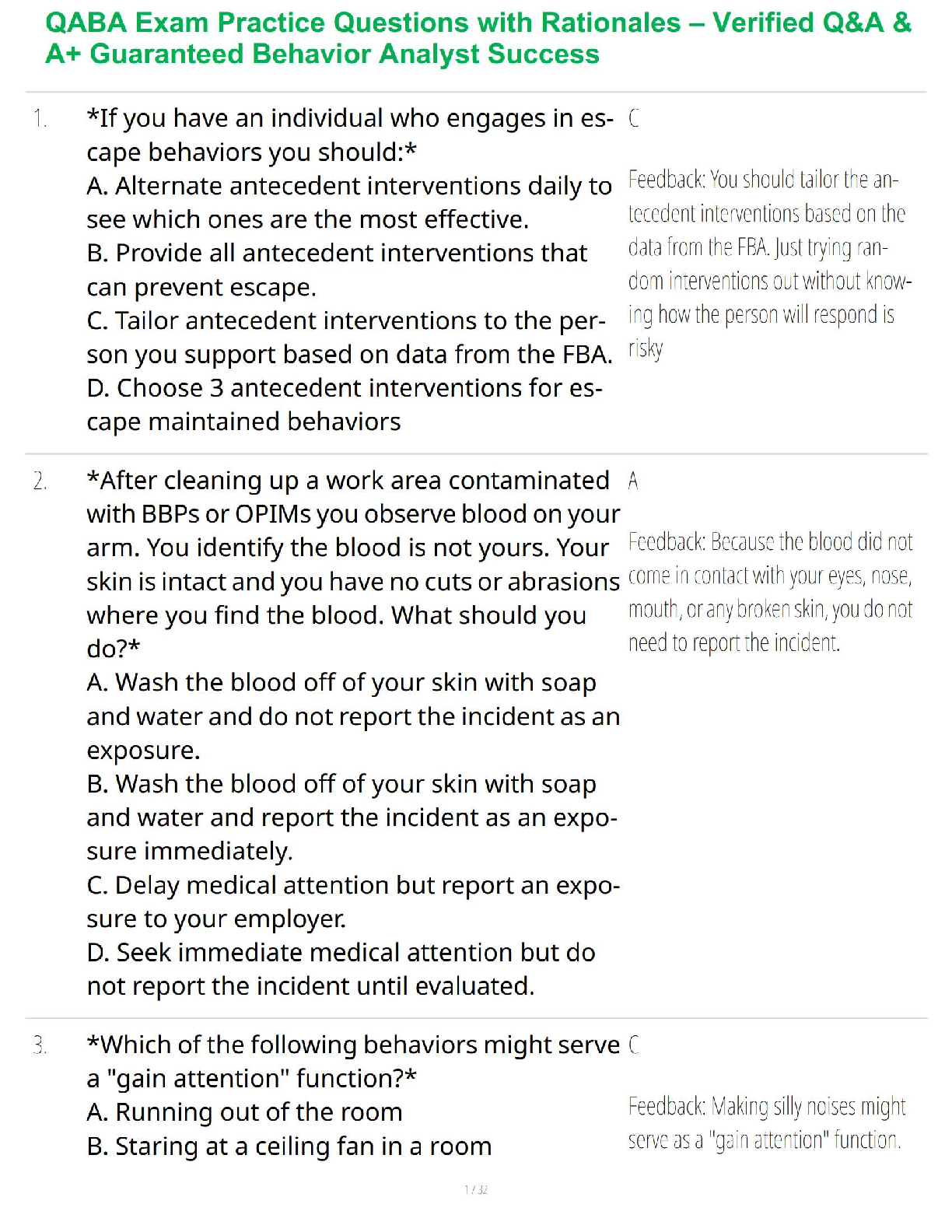 Registered Behaviour Technician (RBT) > STUDY GUIDE > QABA Exam Practice Questions with Rationales – Verified Q&A & A+ Guaranteed Behavior Analyst Success (All)