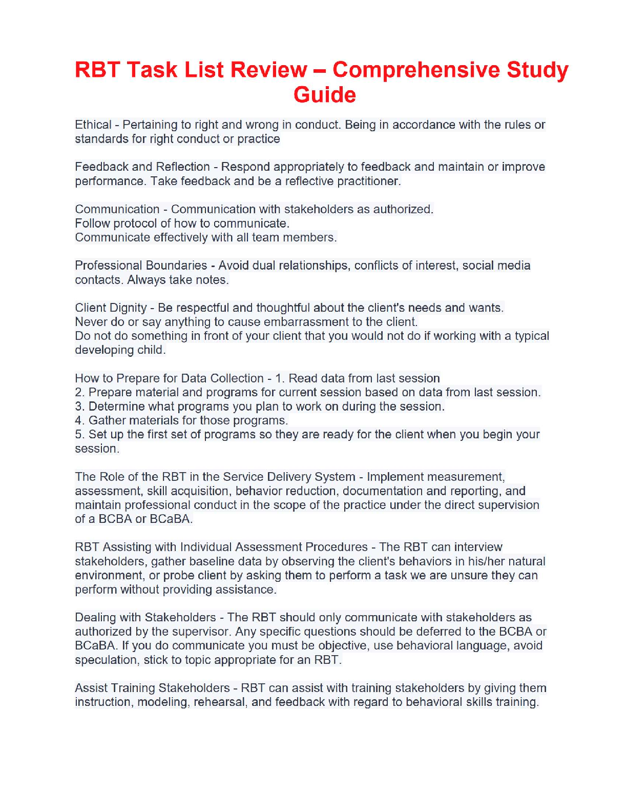 Registered Behaviour Technician (RBT) > EXAM > 📘 RBT Task List Review – Comprehensive Study Guide (All)