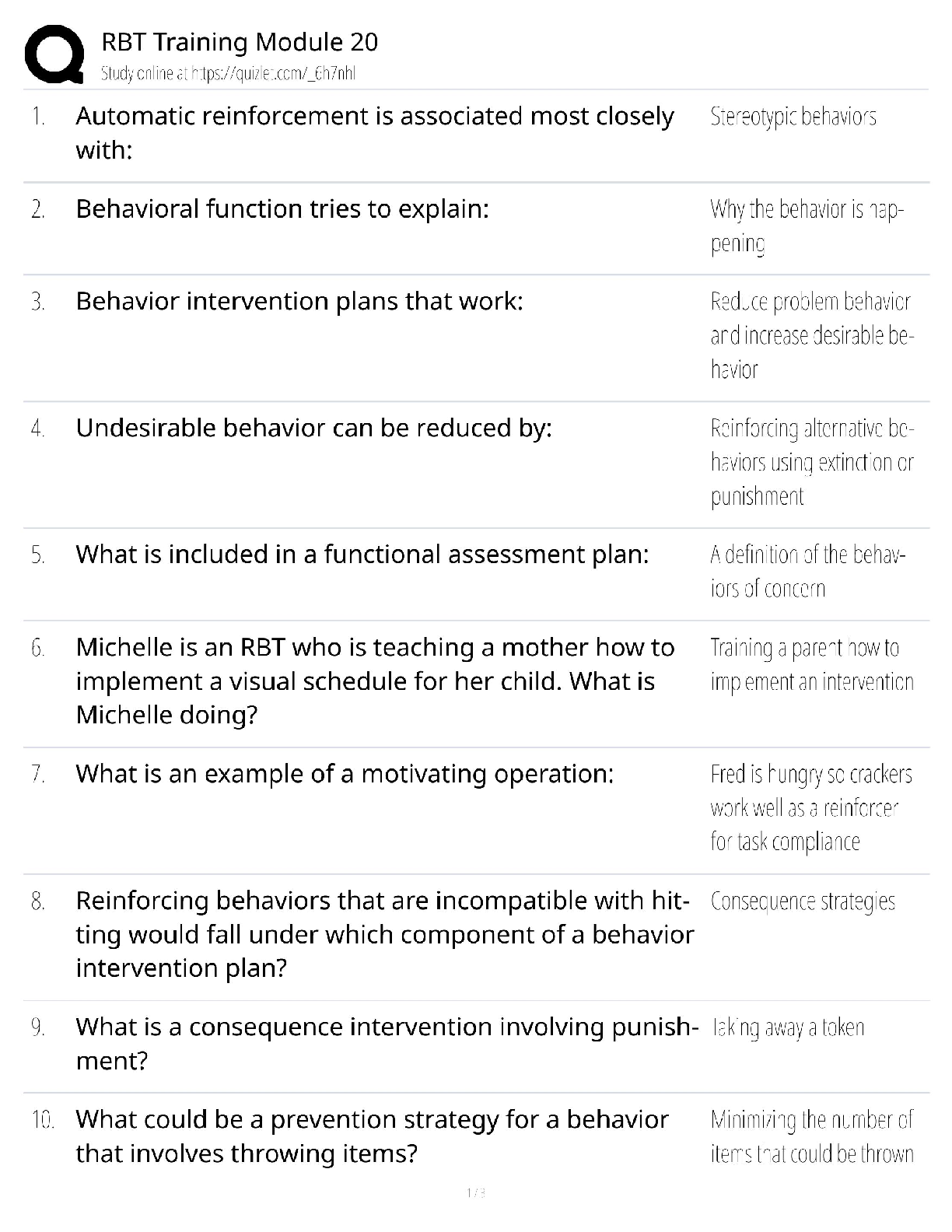 Registered Behaviour Technician (RBT) > QUESTIONS & ANSWERS > RBT Training Module 20 / Practice Exam & Study Guide / 2025 Update / Score 100% (All)