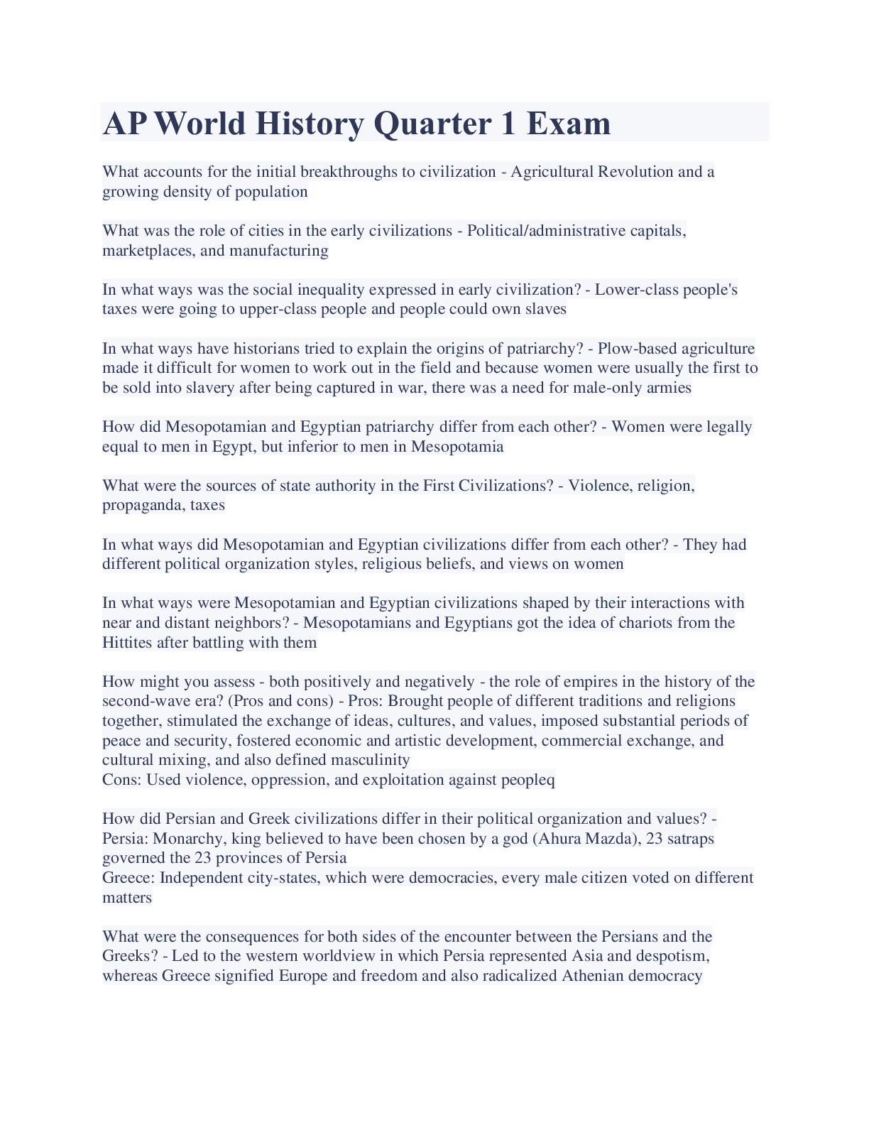 History > EXAM > AP World History Quarter 1 Exam Q&A (All)