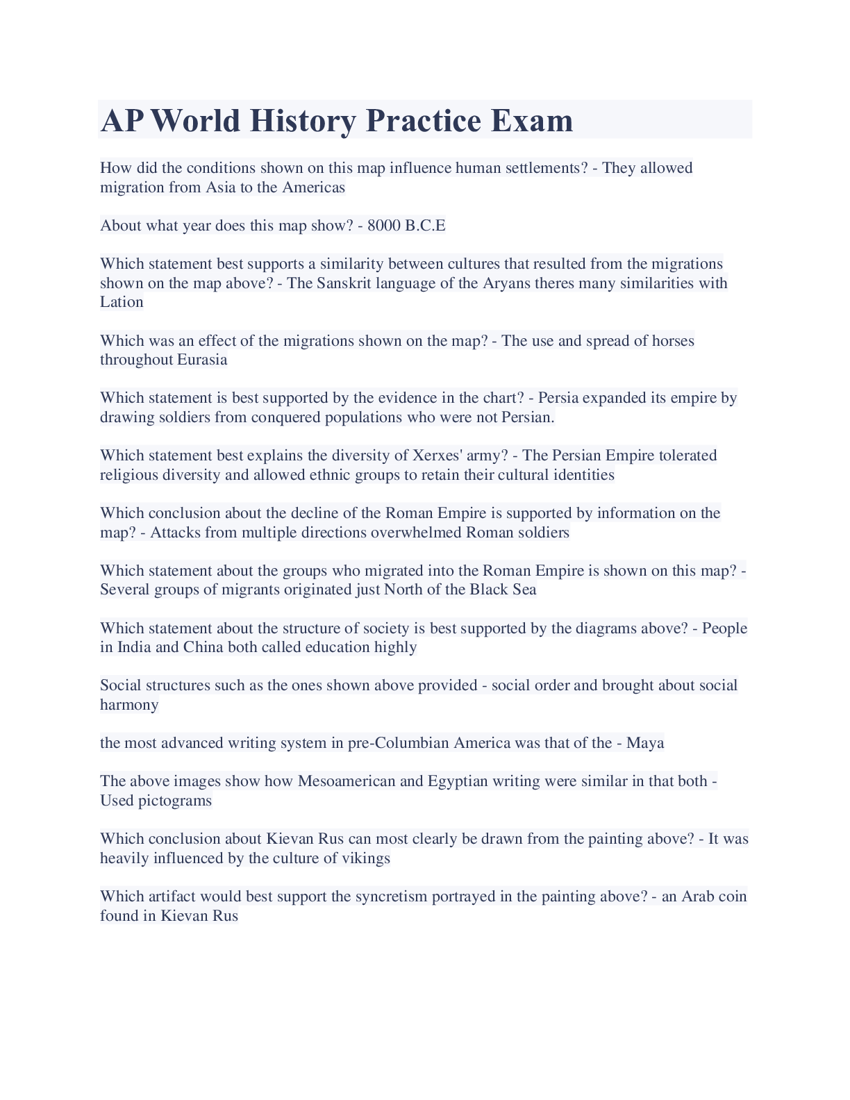 History > EXAM > AP World History Practice Exam With Complete Solution (All)