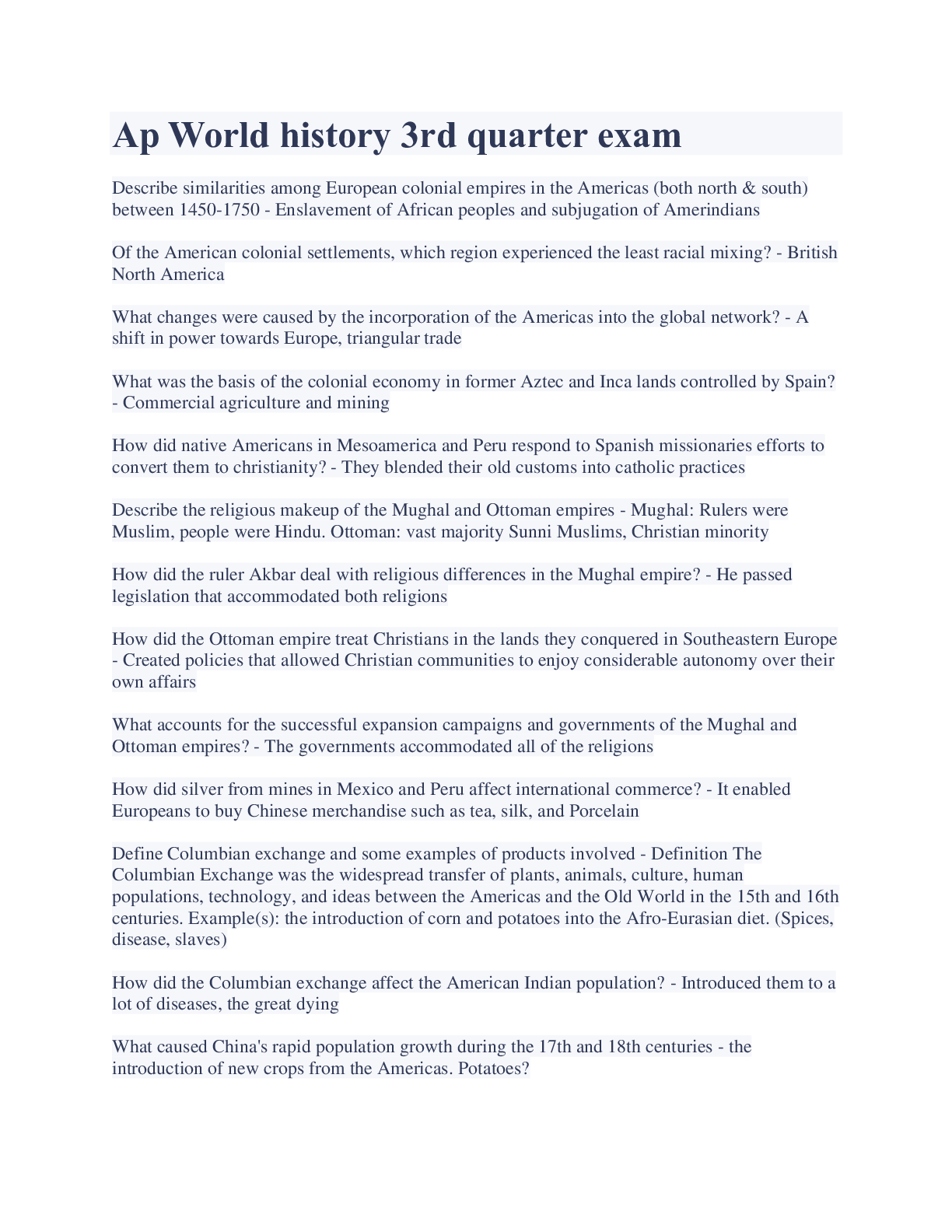 History > EXAM > Ap World history 3rd quarter exam Questions And Answers (All)