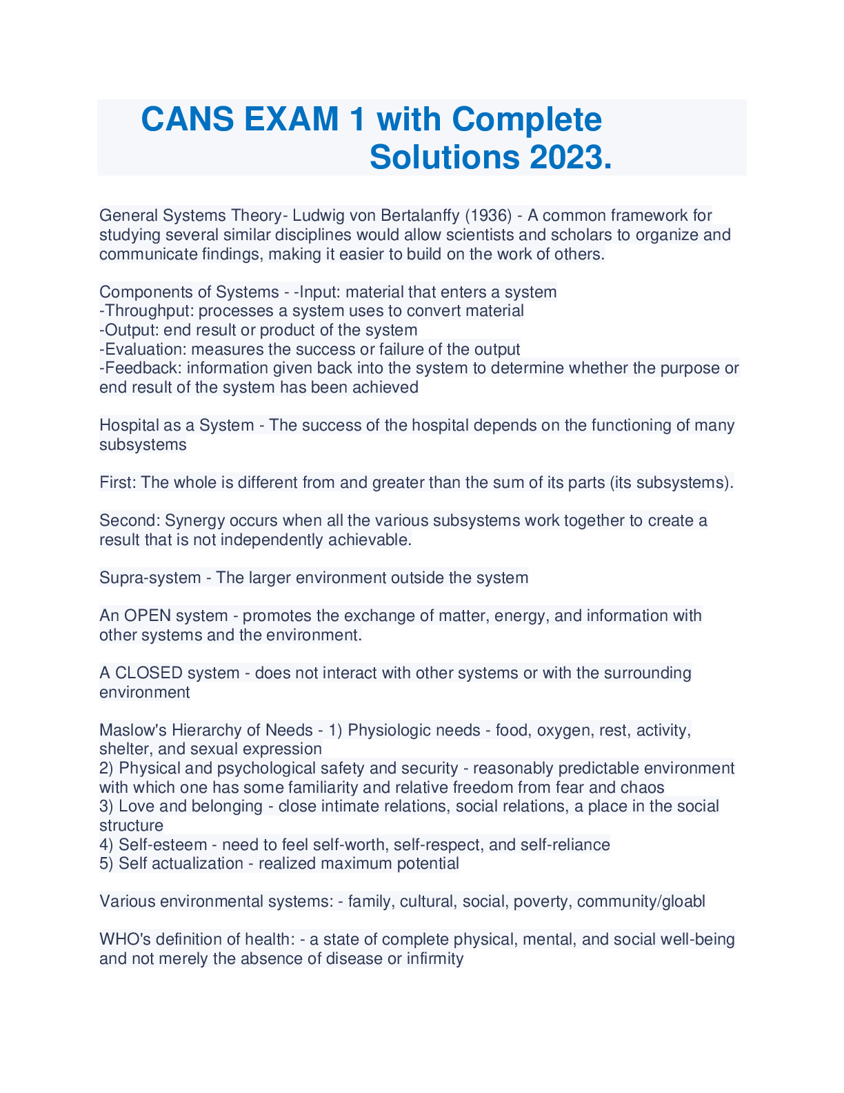 History > EXAM > CANS EXAM 1 with Complete Solutions 2023. (All)