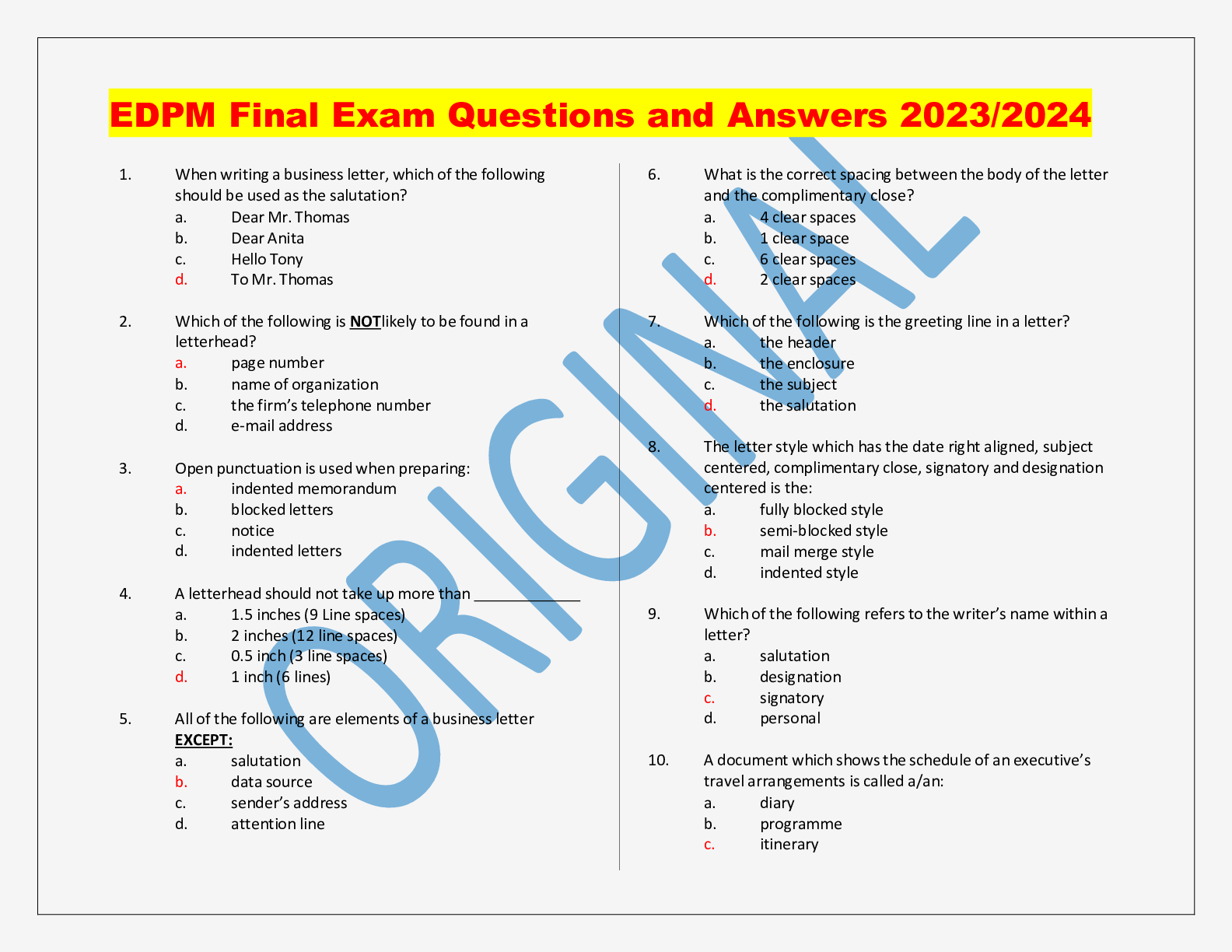 History > EXAM > EDPM Final Exam Questions and Answers 2023/2024 (All)
