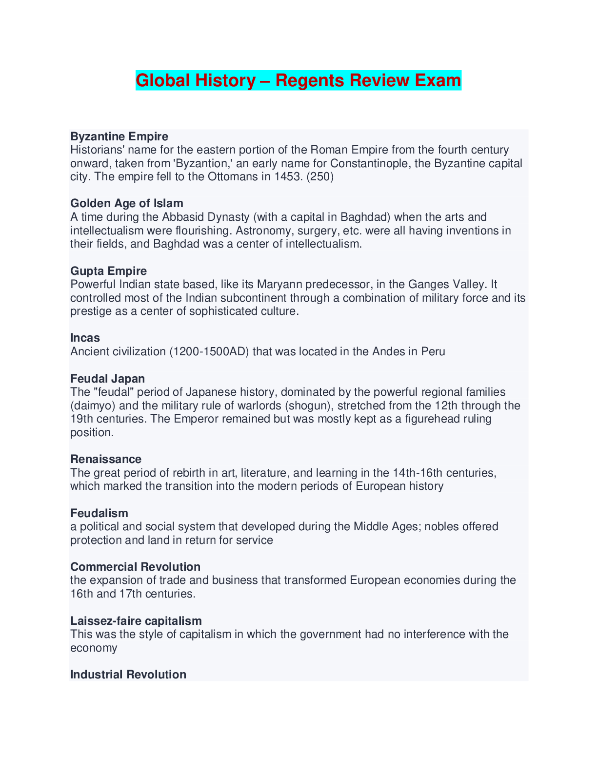 History > EXAM > Global History - Regents Review Exam (With Verified Answers) (All)