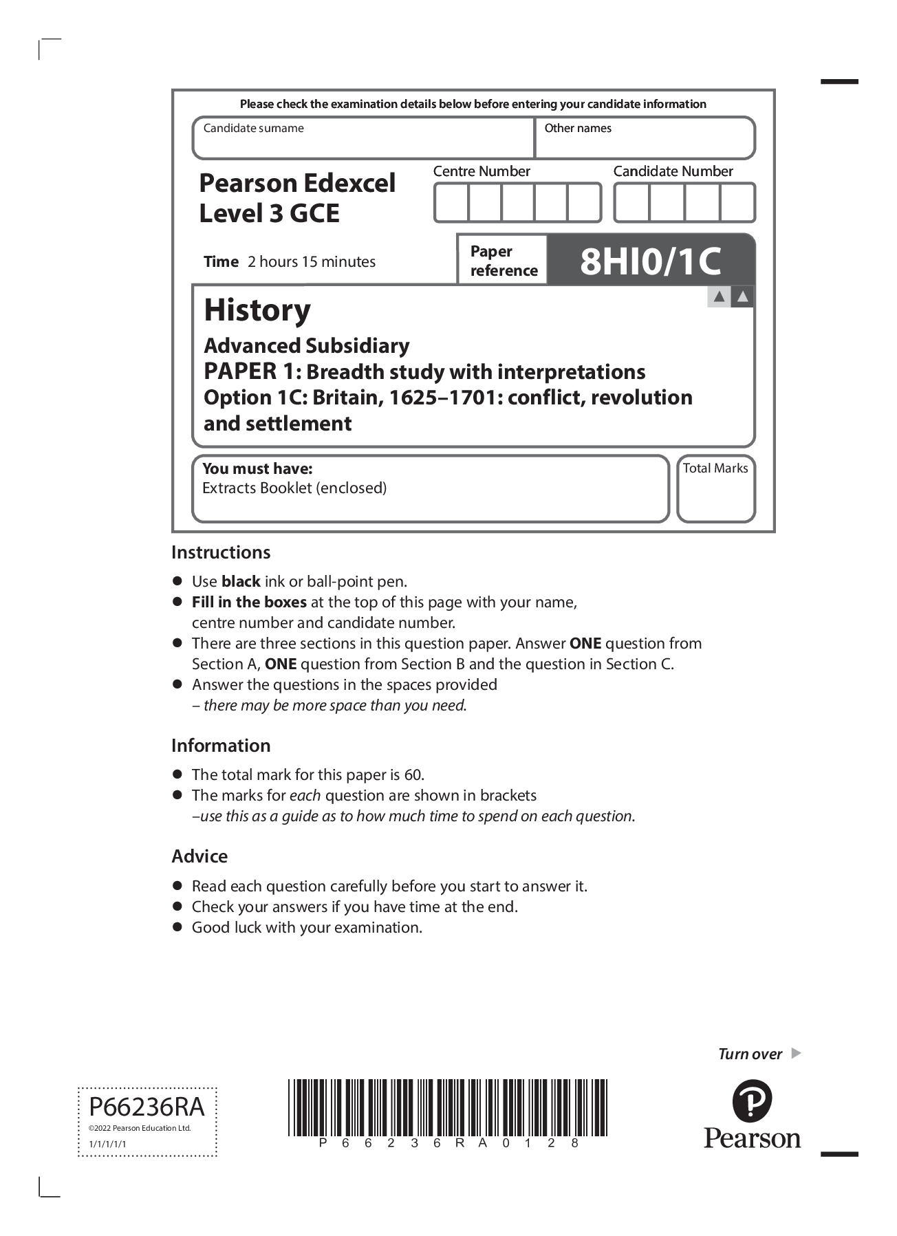 History > A-Level Question Paper > EDEXCEL AS LEVEL JUNE 2022 HISTORY QUESTION PAPER 1C (All)
