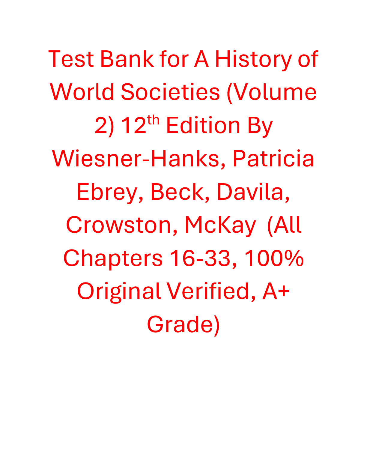 History > TEST BANKS > Test Bank for A History of World Societies (Volume 2) 12th Edition By Wiesner-Hanks, Patricia Ebrey, Beck, Davila, Crowston, McKay (All)