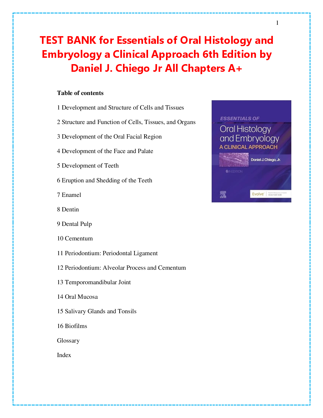History > TEST BANKS > TEST BANK for Essentials of Oral Histology and Embryology a Clinical Approach 6th Edition by Daniel J. Chiego Jr All Chapters A+ 2025 (All)
