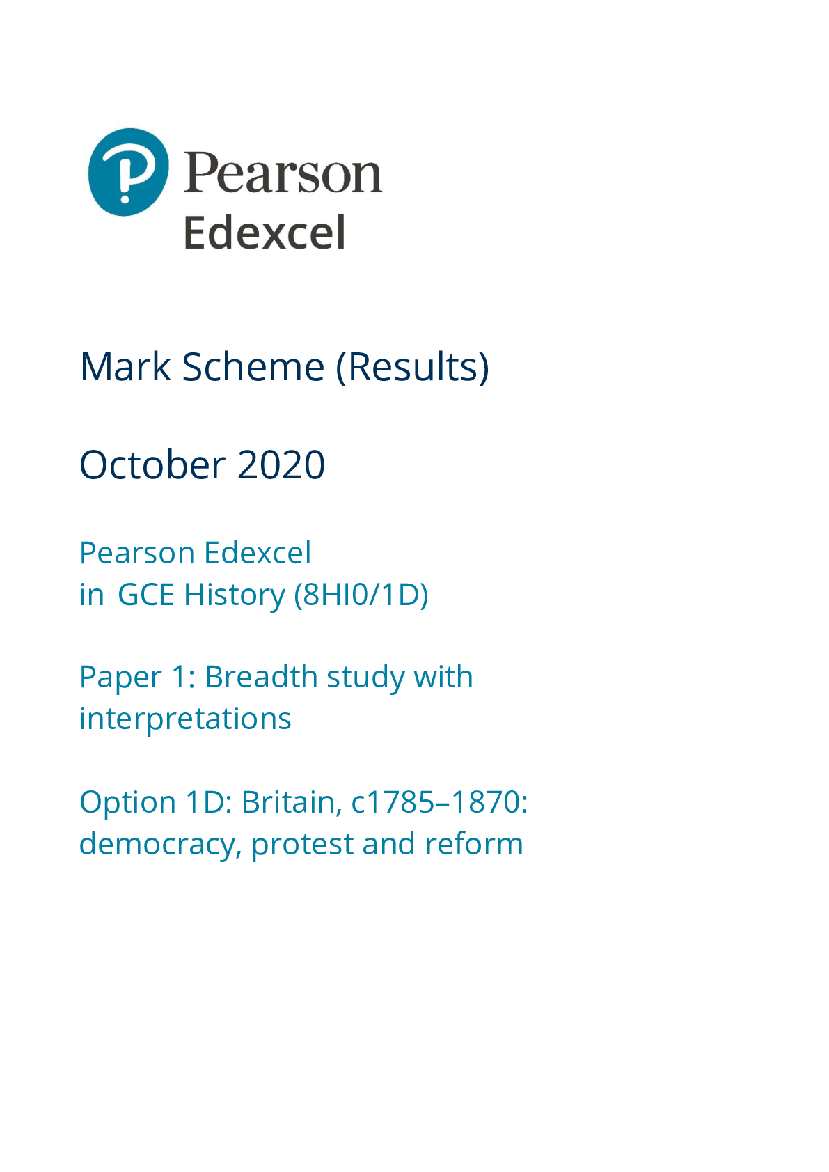 History > Edexcel > Pearson Edexcel_History_8HI0/1D Mark Scheme_2020 | Paper 1: Breadth study with interpretations (All)