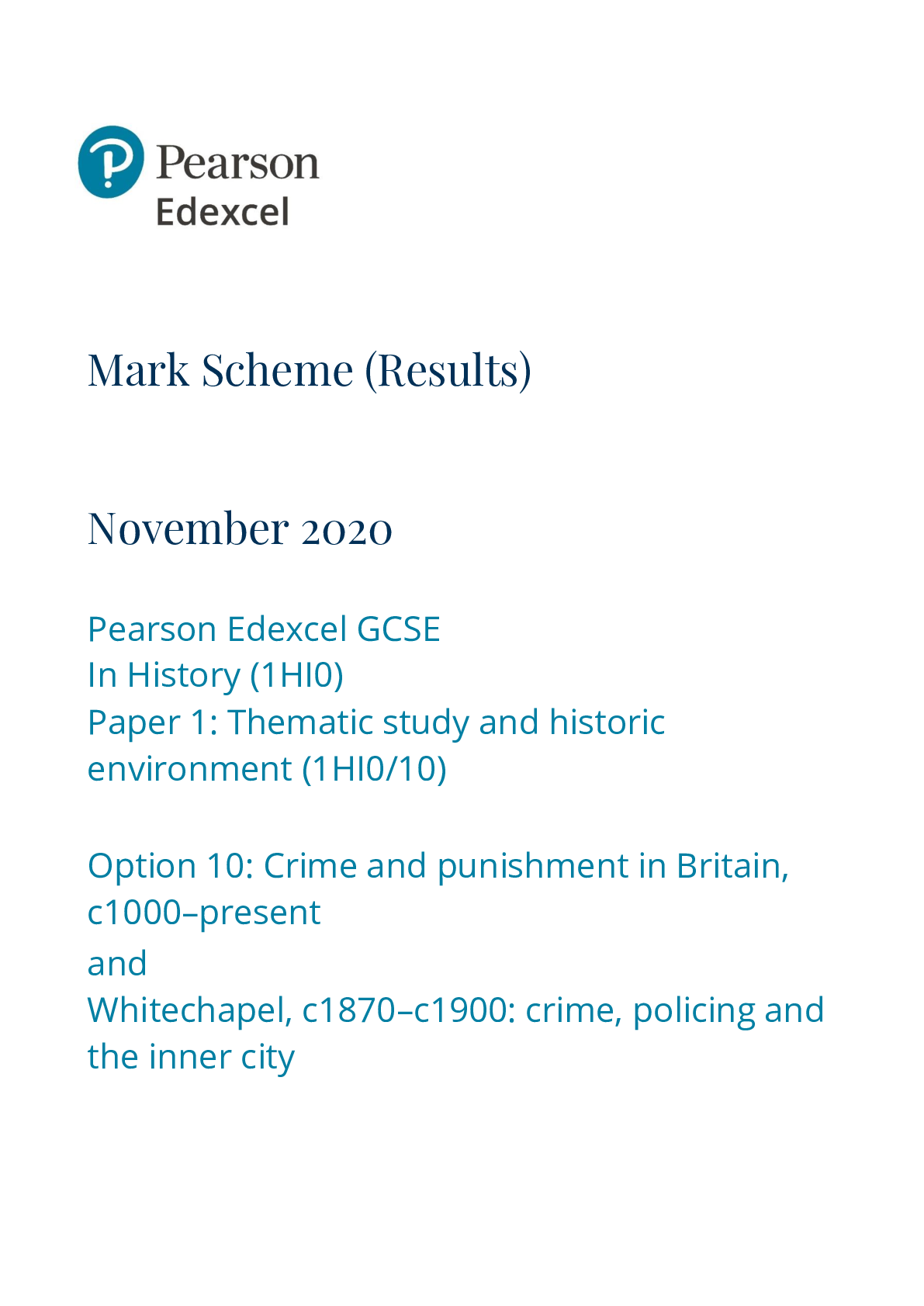 History > GCSE MARK SCHEME > Pearson Edexcel_GCSE (9-1) History_1HI0/10 Mark Scheme 2020 | Paper 1: Thematic study and historic environment (All)