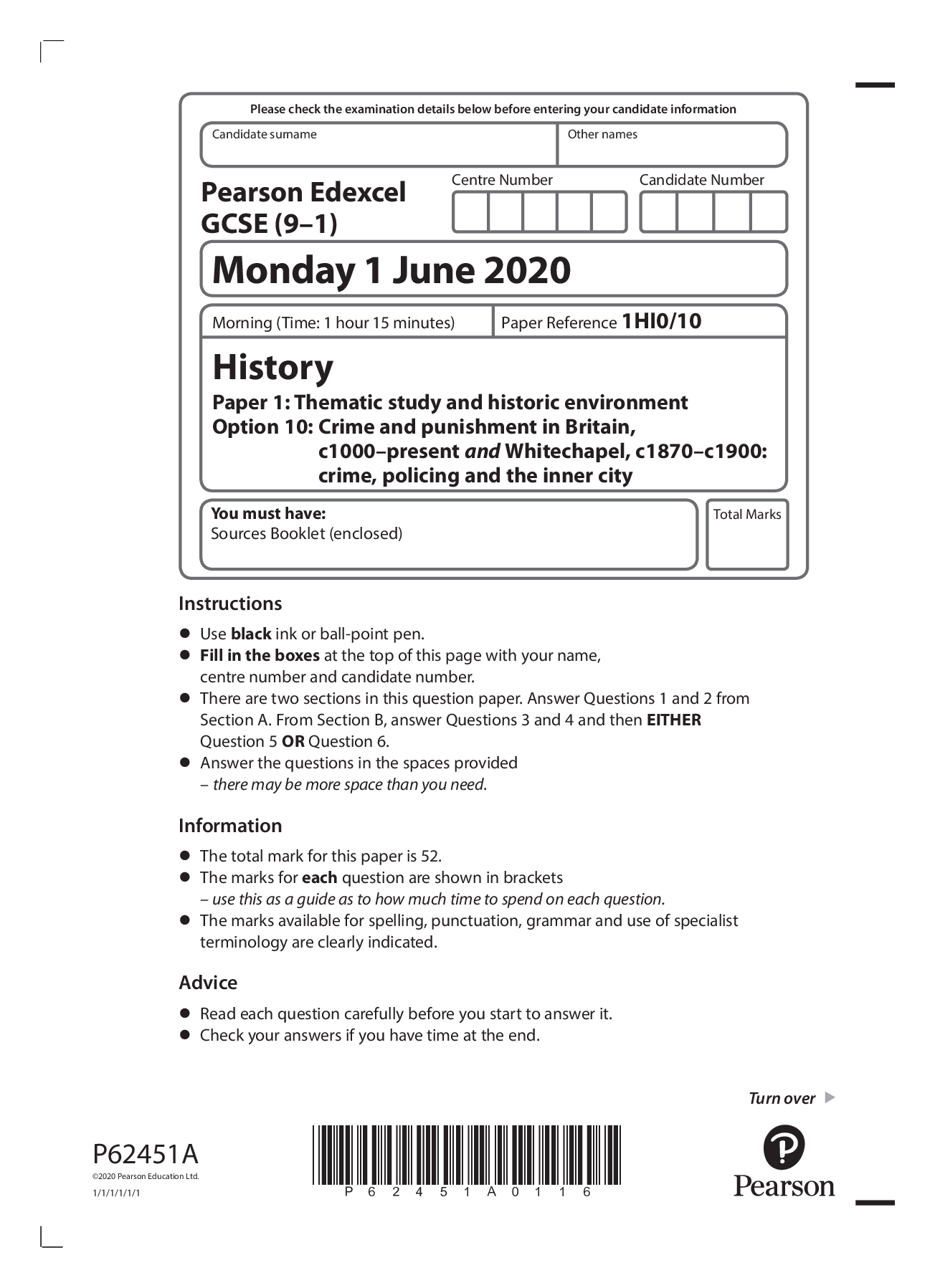 History > GCSE QUESTION PAPER > Pearson Edexcel_GCSE (9–1) History_1HI0/10 Question Paper 2020 | Paper 1: Thematic study and historic environment (All)